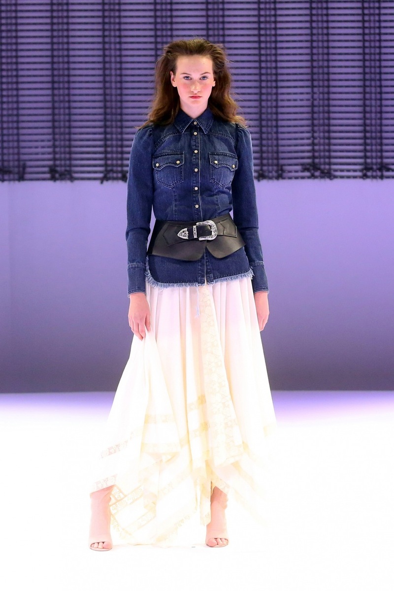 The denim mega skirts and checks all around will do for some western ranch, but even though I love horses and the atmosphere of a lifestyle far away from the city centre, I find that these creations by Klára failed to draw my attention. But what did win my full vote is the original denim jacket with an image of a woman with a cigarette on the back. If I added a pair of slim leather trousers, Jimmy Choo ankle high heels and a Fendi Peekaboo Regular handbag, it would immediately be love at first sight!