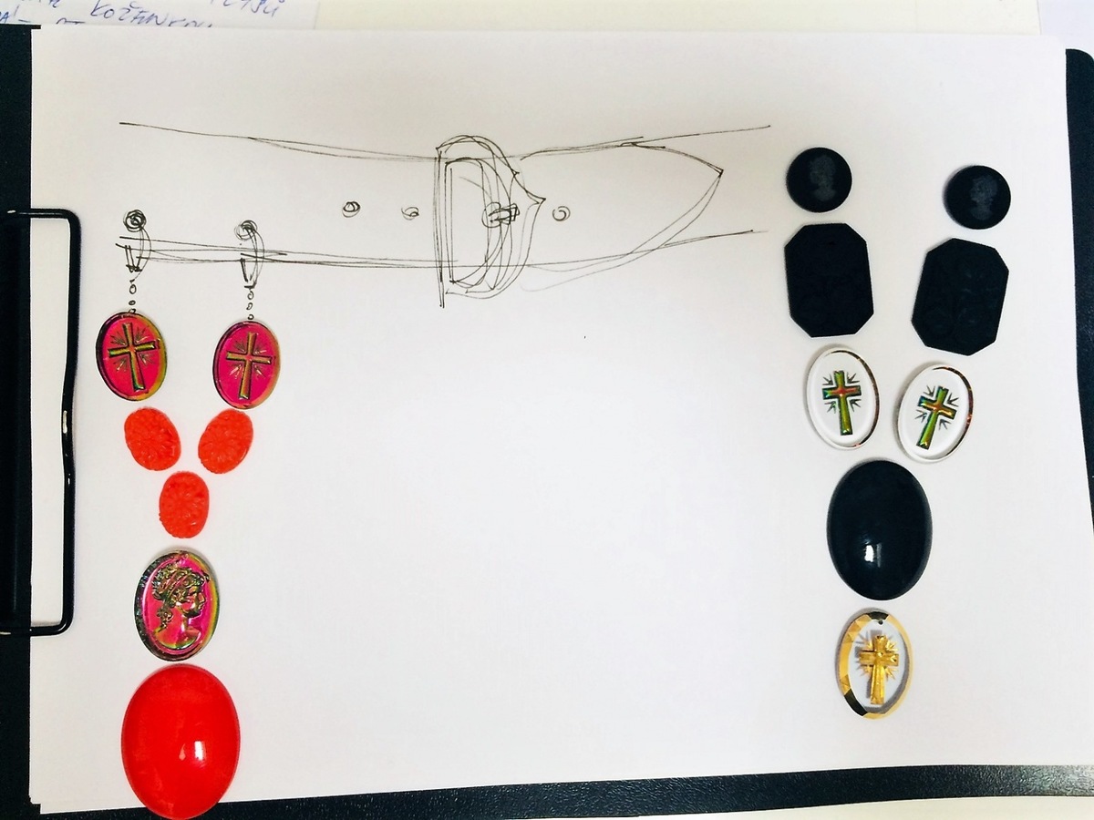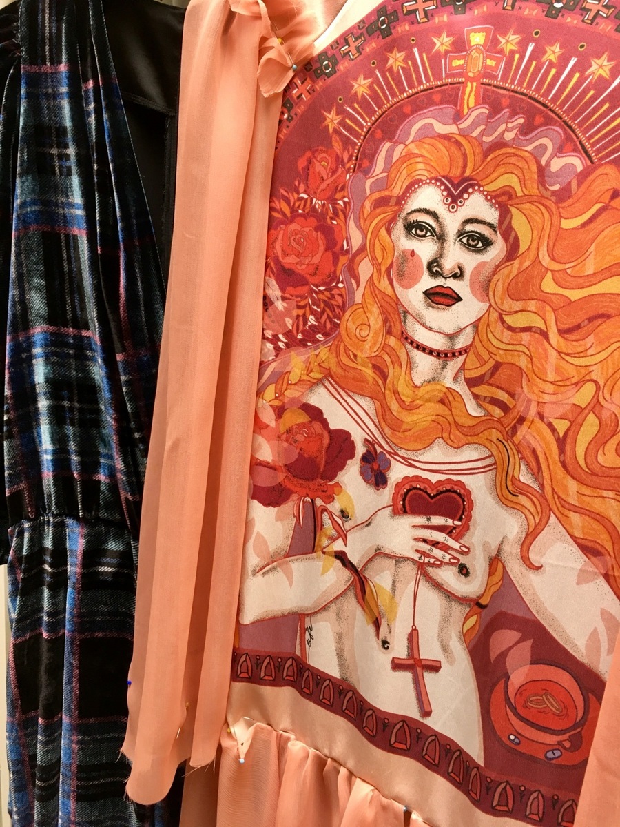 For the creation of her new collection, Klára Nademlýnská has also invited Andrea Vytlačilová and Daniela Ferenčíková. Andrea Vytlačilová created a drawing of a "Madonna" on an altar, which reflects details from history up to present. Daniela Ferenčíková on the other hand created hand-woven tapestries with themes of renaissance portraits of women, translated into pop-art style.