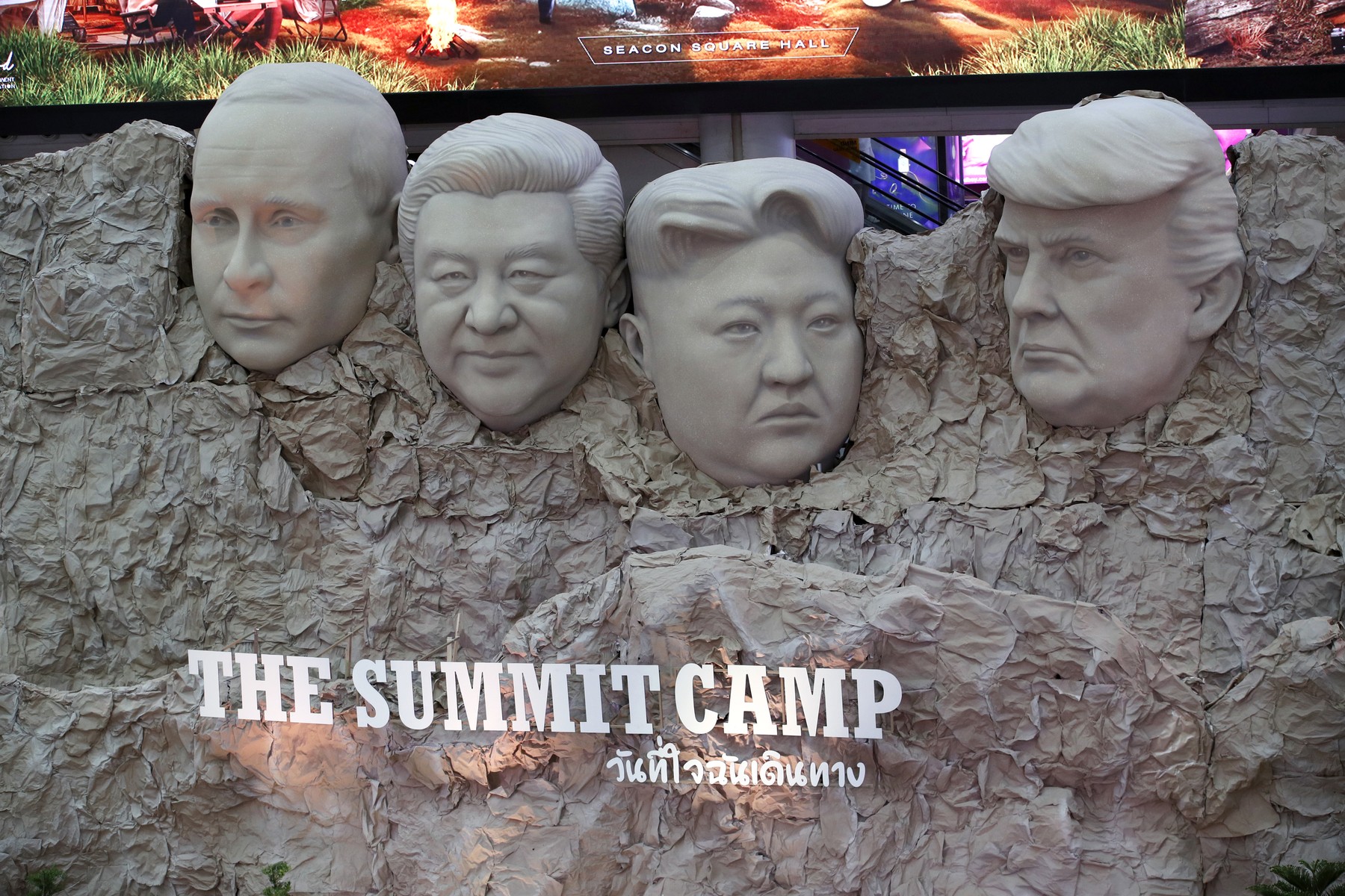 V Bangkoku možná nabyli dojmu, že by si s prvním prezidentem USA Trump neměl, co říct tak mu do své verze vytesali někoho, kdo si s Trumpem velmi rád popovídá. Ruský prezident Vladimir Putin, severokorejský diktátor Kim Čong-un, čínský prezident Si Tin-pching mu dělají společnost na parodické soše.