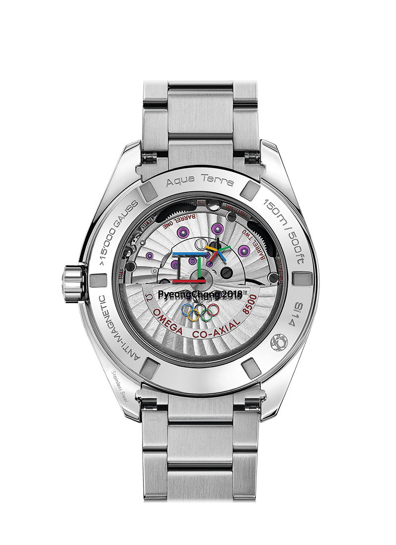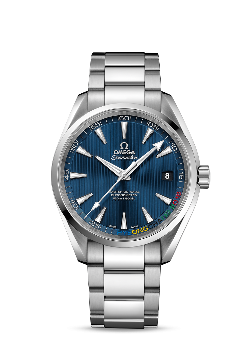 The luxurious piece, Aqua Terra, has a steel case of 41.5 mm in size and a coaxial clockwork of 8500 calibre, boasting by the Master-Chronometer designation. The blue dial is individualised by inscription ´PYEONGCHANG 2018´, which OMEGA created by using colours of the Olympic circles.
