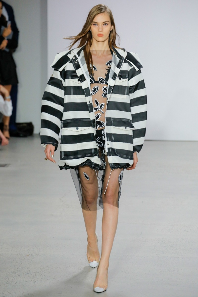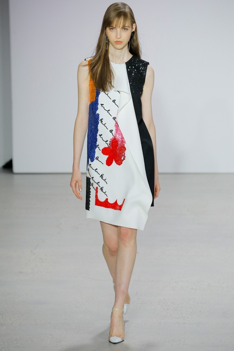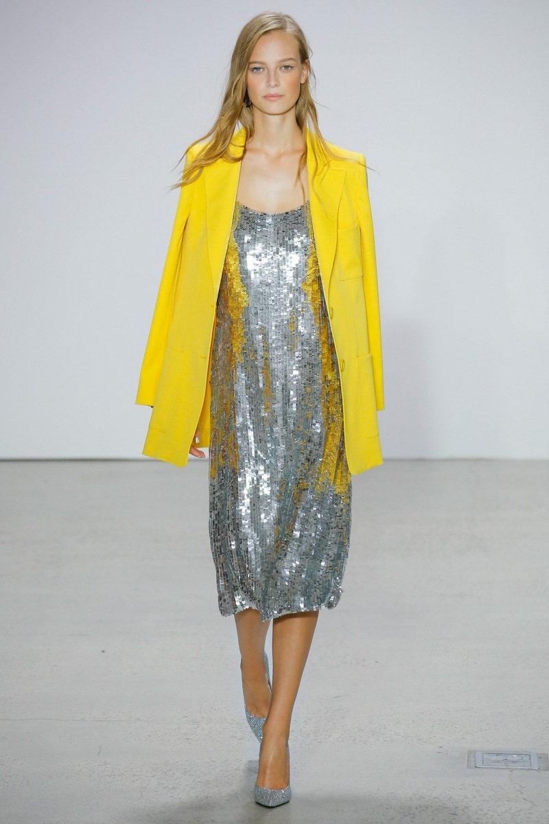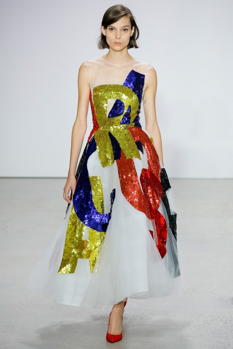 The show SS 2018 of the Oscar de la Renta fashion house was, in my view, a mix of the old denim 2004 Replay collection, reminiscence of Andy Warhol and a copied Kylie Jenner lip gloss packaging. How else can you explain that for example the pseudo-flowing gold sparkle on a dark blue evening dress is in just now?