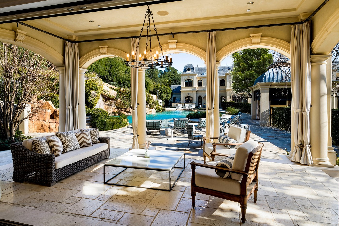 The house also has a huge pool, stone walkways, and a very carefully designed space. It provides privacy, a sense of luxury, and comfort.