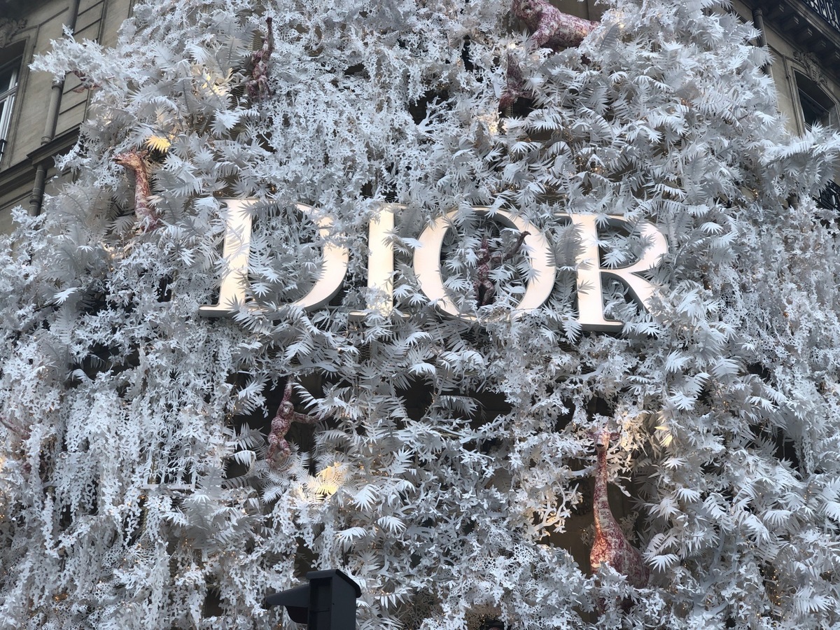 In Avenue Montaigne, the most luxurious shopping avenue in Paris, my attention is drawn by Christmas decorations of the Dior boutique (the one where Carrie tripped and fell in Sex and the City). In the street there is a flow of tourists with their purchases. Some sit outside in front of the renowned restaurant, Avenue, where lunch is just beginning to be served.
