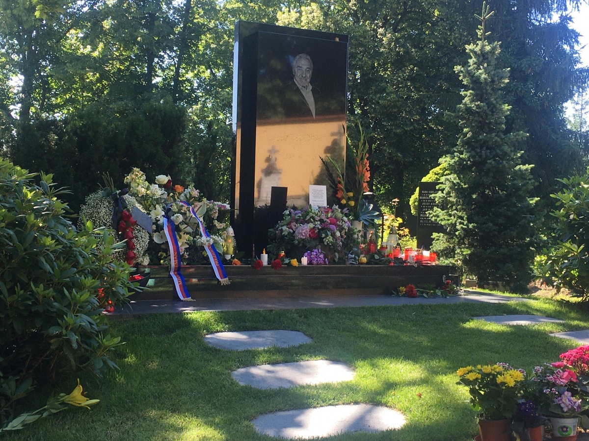 Patrik Rokl, the godson of Karel Gott, whose father Rudolf used to be Gott's pianist for years, also stopped at the grave with a rose and a photograph of his father.