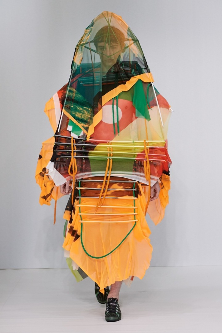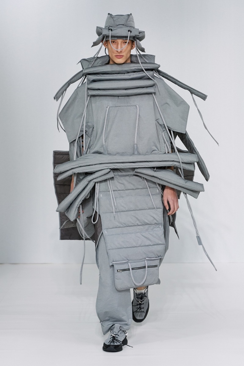 Craig Green didn't want to stay behind and sent a whole array of oddities on the catwalk. This gray mouse full of paddings and cords also made it in our worst of the worst ranking. The mind really boggles - for which occasion does one wear such an outfit? We bet either for a trip to the space, or to the madhouse!