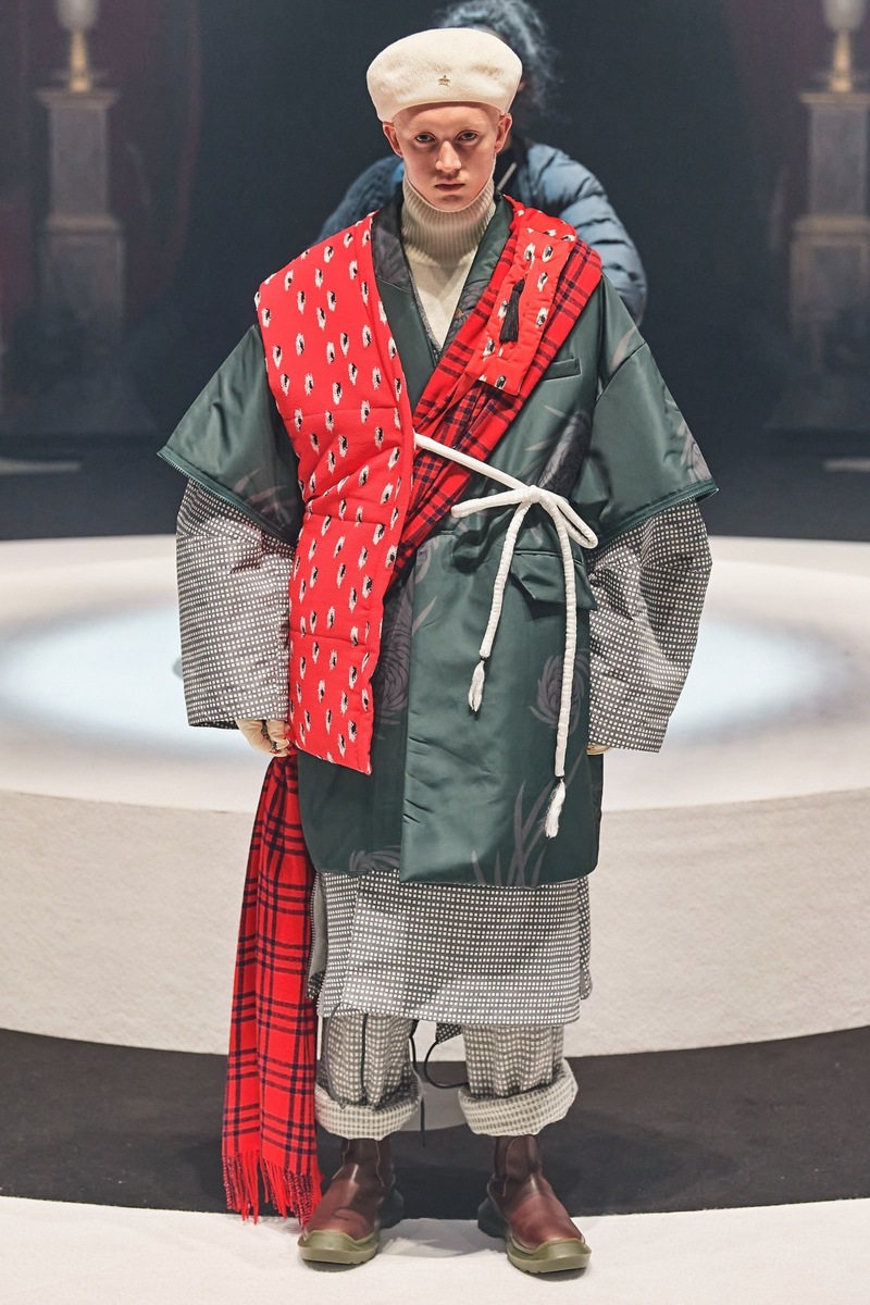 A turtleneck, a jacket, another jacket, a hideous hat, put on expression of Ivan from Morozko and off the catwalk we go! Japanese designer Jun Takahashi, who is the man behind the brand Undercover, is either terribly worried that he might freeze to death one day, or he reaaaally loves Russia.