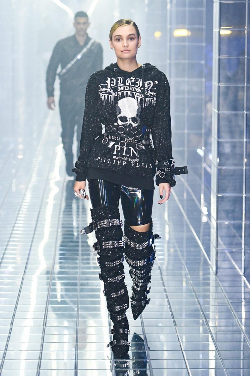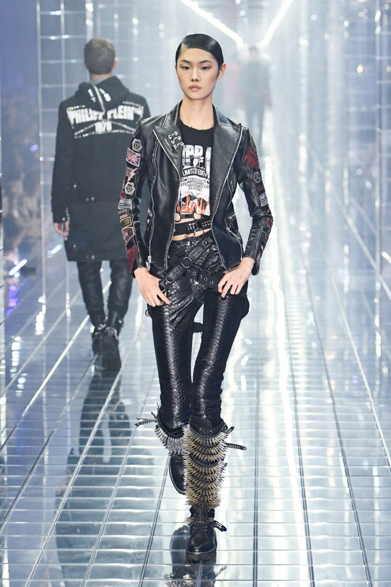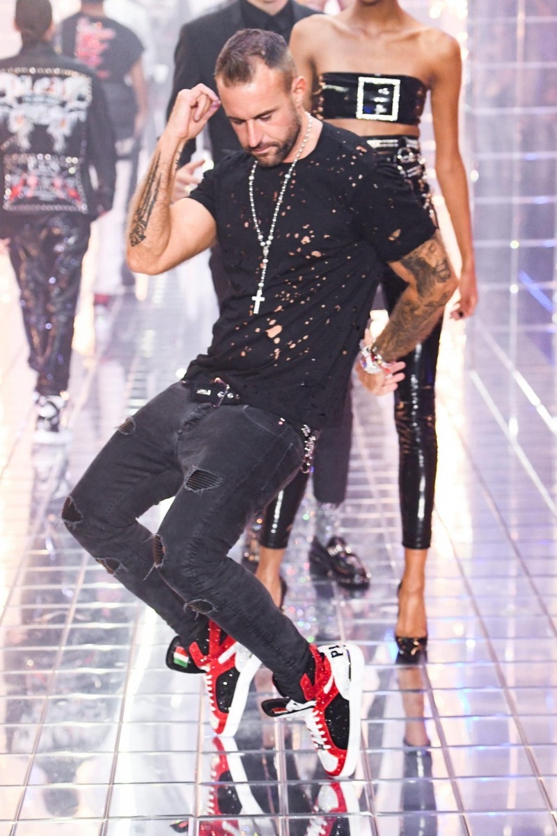 A collection stuffed with tacks, needles and all sorts of punk pins. Yes, that´s the SS19 collection by Philipp Plein. He says he was inspired by Michael Jackson, however this point is perhaps only reflected in his little gesture at the end of the show. The whole reminds me more of the of Marilyn Manson and he is quite a long shot from Jackson, really ...
