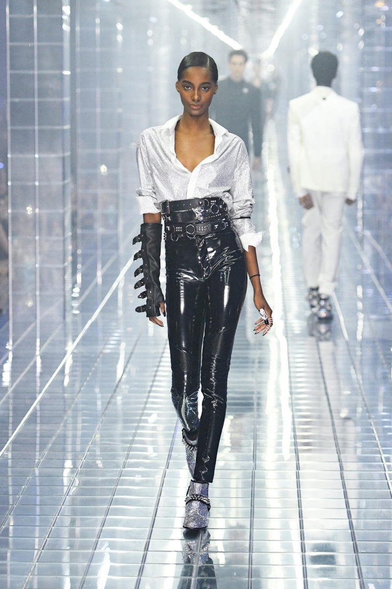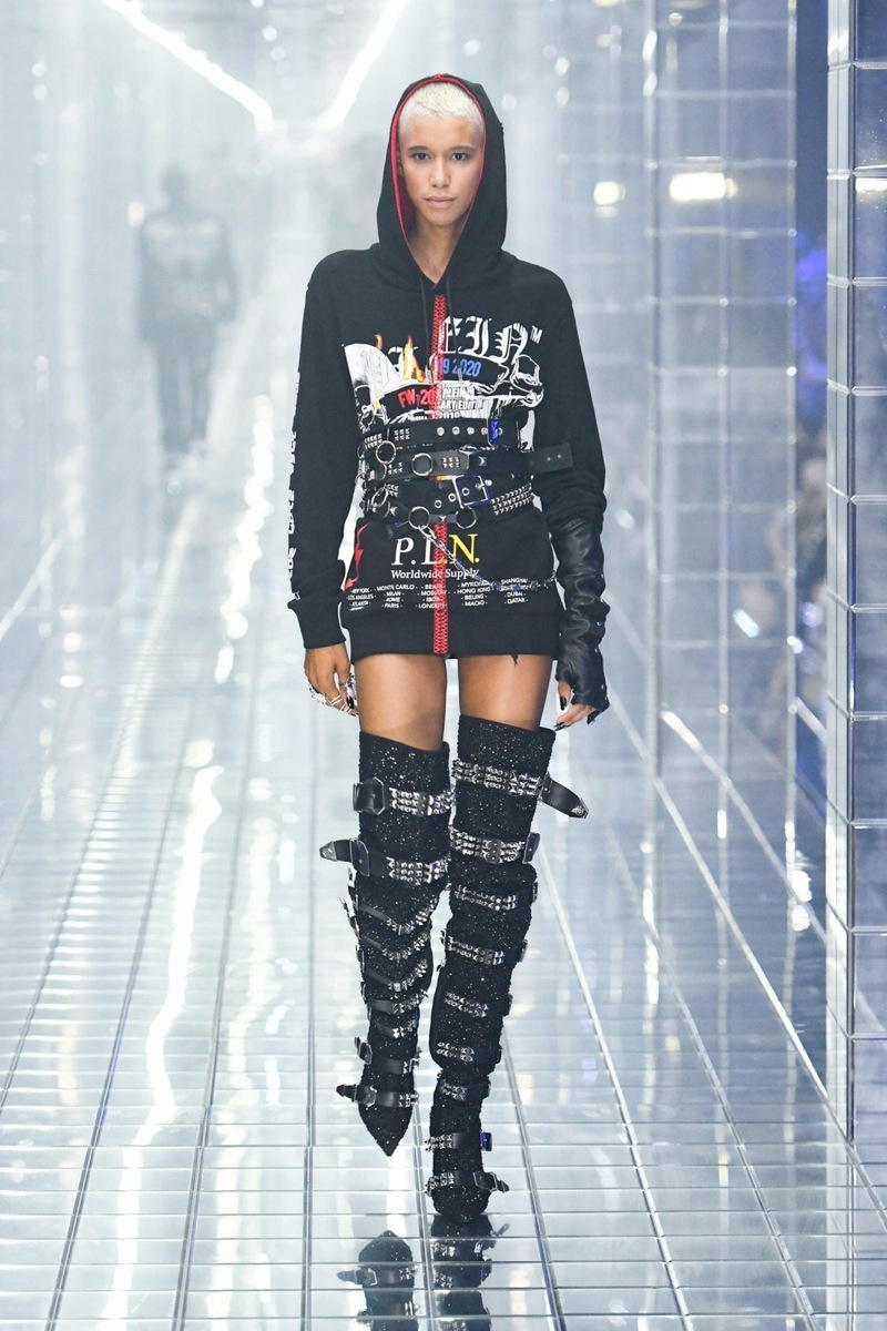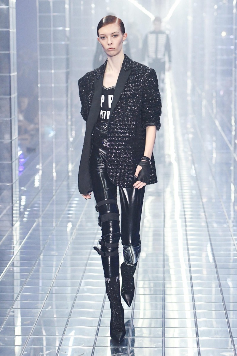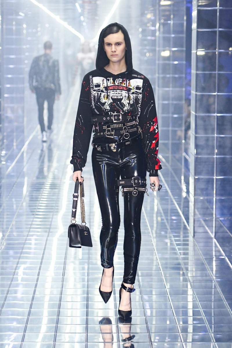 A collection stuffed with tacks, needles and all sorts of punk pins. Yes, that´s the SS19 collection by Philipp Plein. He says he was inspired by Michael Jackson, however this point is perhaps only reflected in his little gesture at the end of the show. The whole reminds me more of the of Marilyn Manson and he is quite a long shot from Jackson, really ...