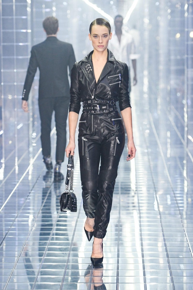 The extravagant models are complemented by leather belts with bold silver applications in rebel style, and leather gloves. In addition, the pieces from the SS19 collection are adorned by gold and silver accents, precious stones or crystals.
