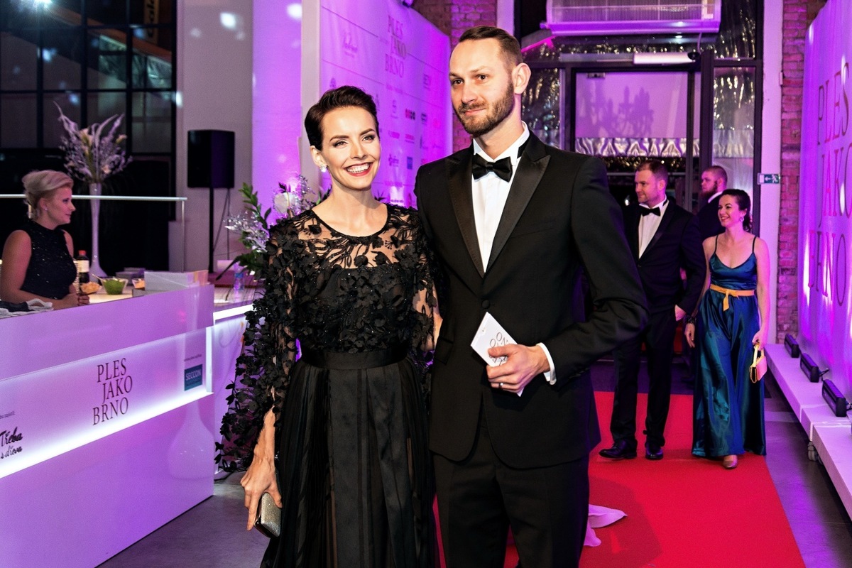 The radiant presenter Lucie Borhyová attends this kind of events rather sporadically compared to other colleagues. But when she goes, she belongs to the stars of the night. It was no different at the Ples jako Brno. Dress by Petra Brzková combines high gloss with luxurious shades and distinctive embellishments and they are a beautiful piece of wardrobe. Next time choose simpler earrings, and the result will be a number one!
