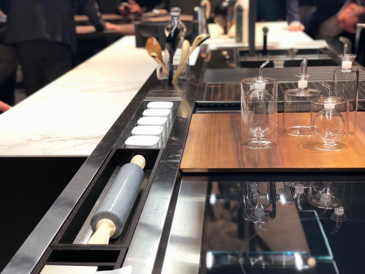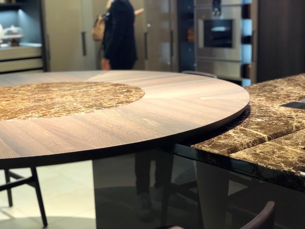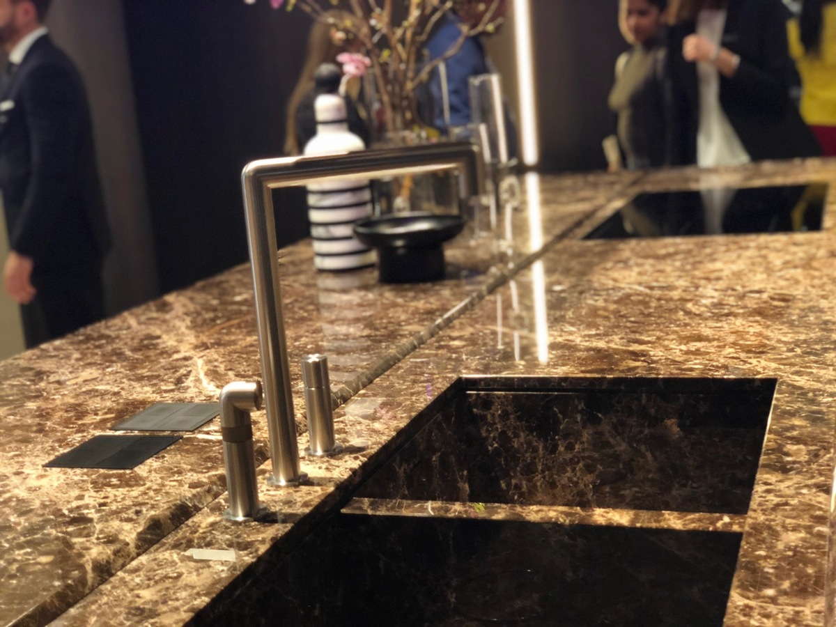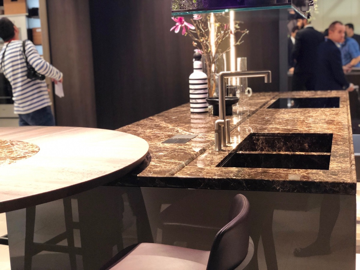 The beautifully crafted Artex kitchen is already on the market. The luxury Marbel Erperador dark kitchen counter was presented at the fair. This kitchen thrills us with its spacious shelves and corners at a 45° angle. What distinguishes the kitchen are its fine details and high quality.