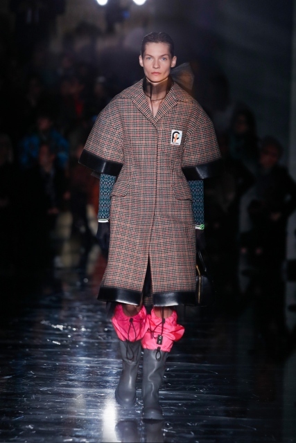 In autumn and winter 2018 we can therefore look forward to vibrant, fine, but also coarse materials and the still trendy oversize style. The Prada FW 2018 collection also showed unstructured jackets, which no one will probably wear any time soon. Not only is the cut shapeless, perhaps too ´sporty´, but also its neoprene material looks very odd. Several of them had a striking velcro strip fastening at the neck, too. But when the catwalk was taken up by models in checked jackets with shorter but also longer sleeves with luxurious leather details, we felt greatly relieved. A great shock was a fashionable unstructured leather jacket with colourful furry decoration which was really astonishing.