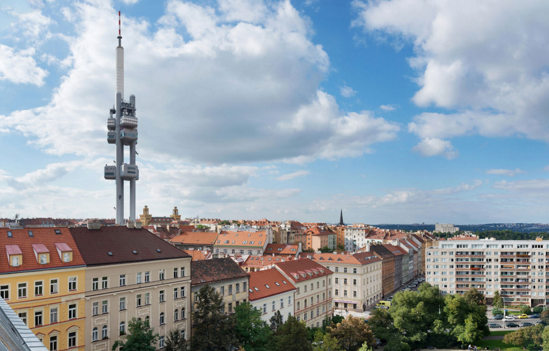 Žižkov has a number of luxurious landmarks which are certainly worth visiting. The most modern one is undoubtedly the Žižkov Television Tower located in Mahlerovy Sady, near the Jewish Cemetery. The TV tower, which also serves as an observation tower, was built in 1992. It is 216 meters tall and as such is currently the tallest building in Prague. The luxurious observation deck is located on its 93rd floor – there you can also treat yourselves to coffee, breakfast, or even a romantic dinner. The gigantic “Babies” plastic statues, a work of David Černý, are a unique decoration on the TV tower; they’ve been permanently placed here since 2001.