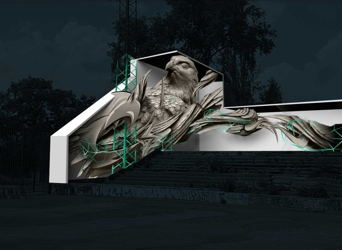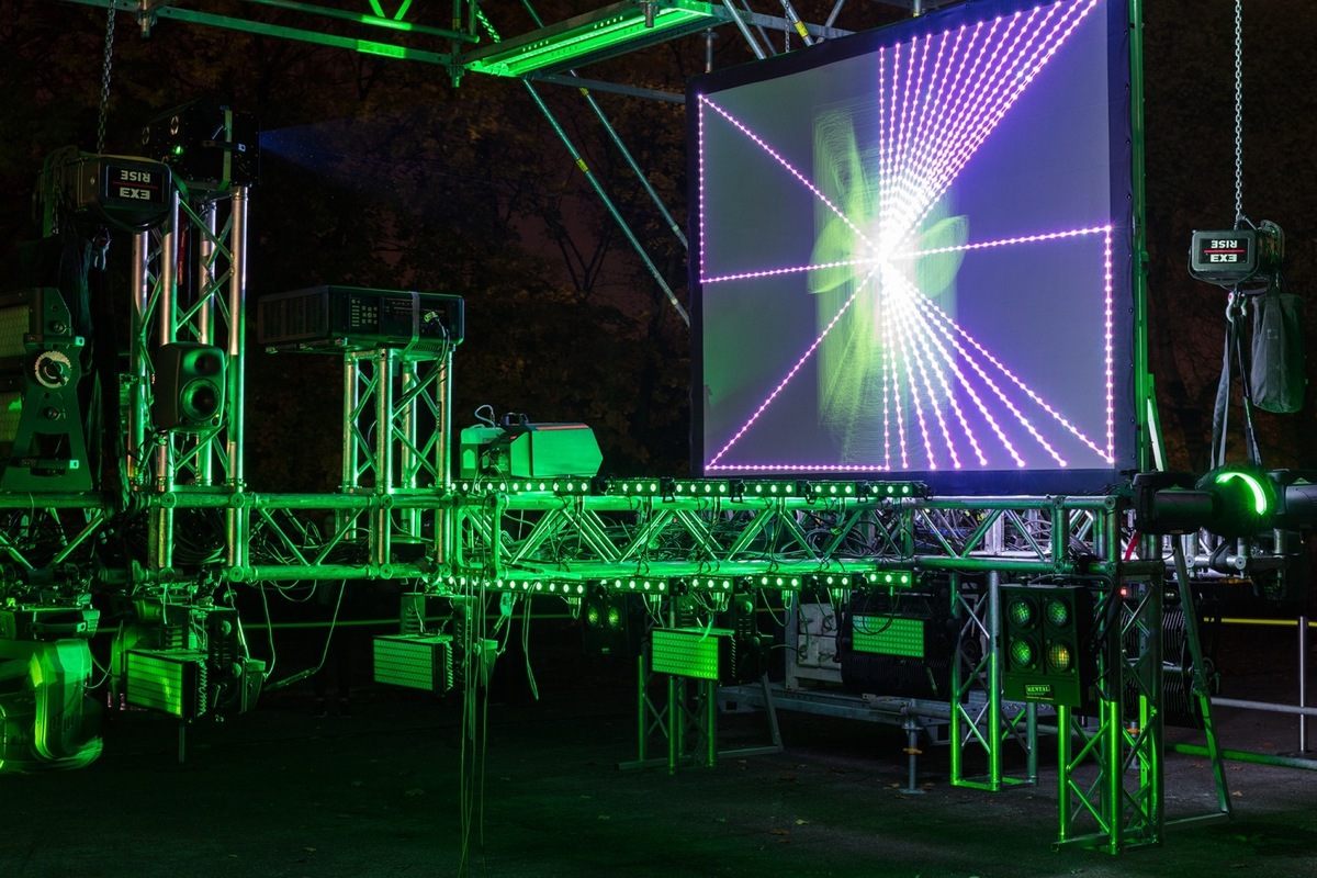NE(U)KLID Jana Mercogliano and her conception of light floating on the waves of the Vltava River. It was inspired by the hidden currents beneath the surface. She has luxuriously succeeded in bringing together new media representing technical progress and physical phenomena.