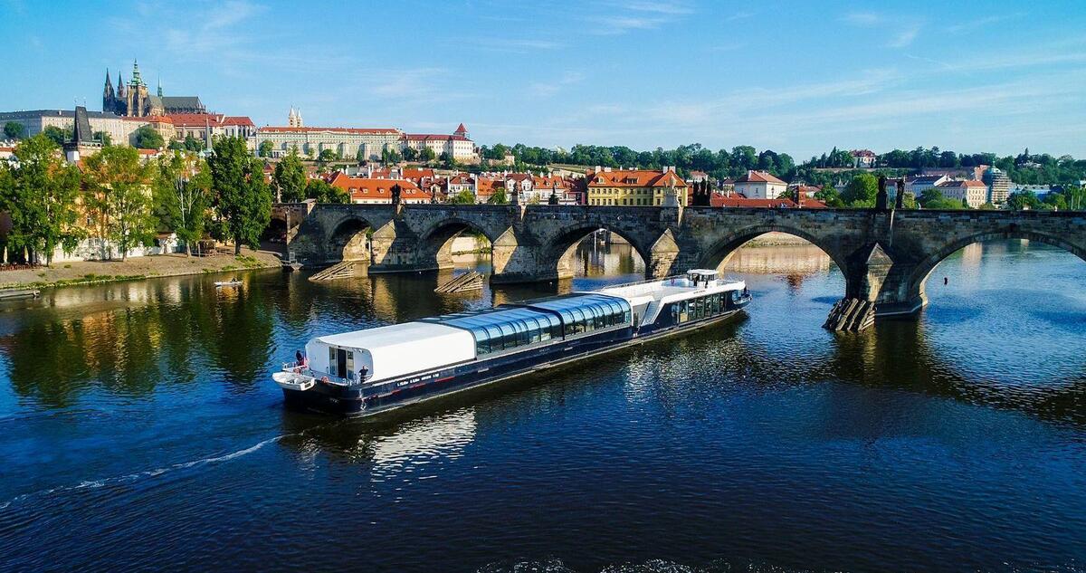 The large-capacity ship is docked at Dvořák´s Quay (Dvořákovo nábřeží) near Čech´s Bridge (Čechův most). From its predecessor, called Agnes de Bohemia and Bohemia Rhapsody, it differs not only by size but also the variable arrangement of its single deck. You can also go on a cruise where you will appreciate in particular the top open deck with its unique luxurious view. Nevertheless, it is also available to be hired for social and business events, and you can thus indulge in the cruise of your life.