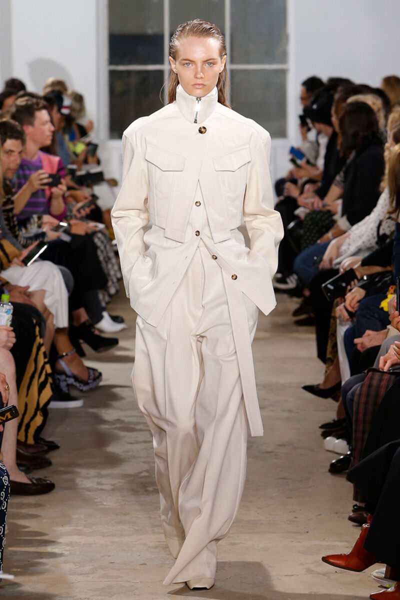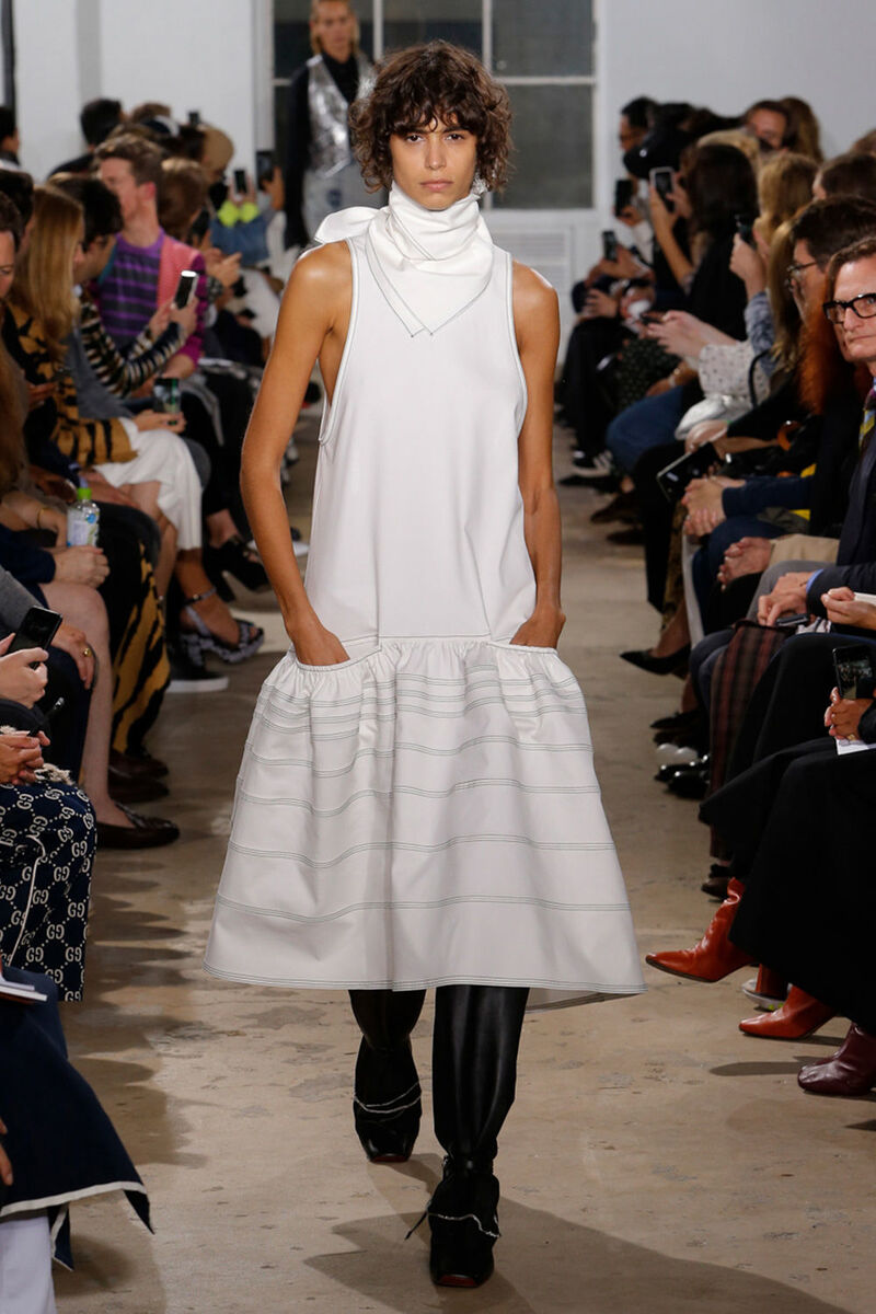In addition to the laid-back, casual models, the SS19 collection consists of leather boots in the shades of white, cream and black of extravagant look. These were donned by all models who appeared on the catwalk, without making any distinction between them wearing a midi or maxi length, which almost skimmed the toes. There was not a mini to be seen in the entire SS19 collection. Proenza Schouler is one of the few brands that has at the NYFW completely relegated this item to the ´not in´ shelf.