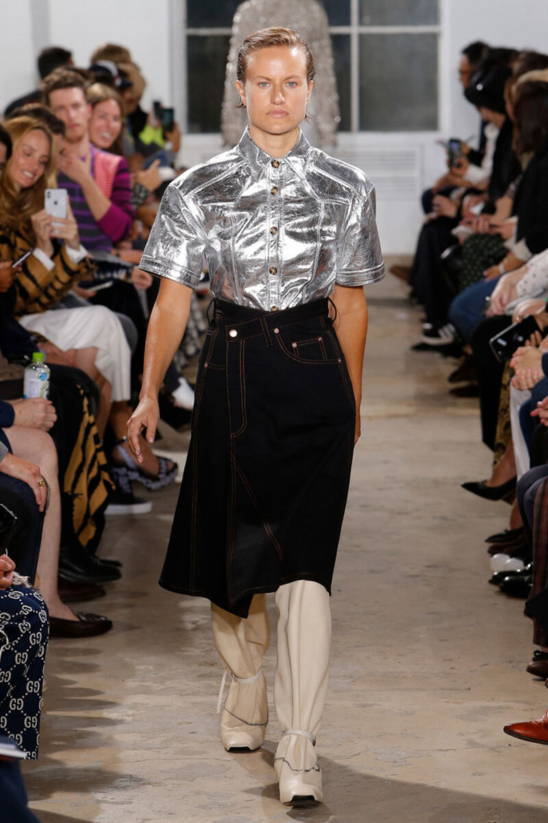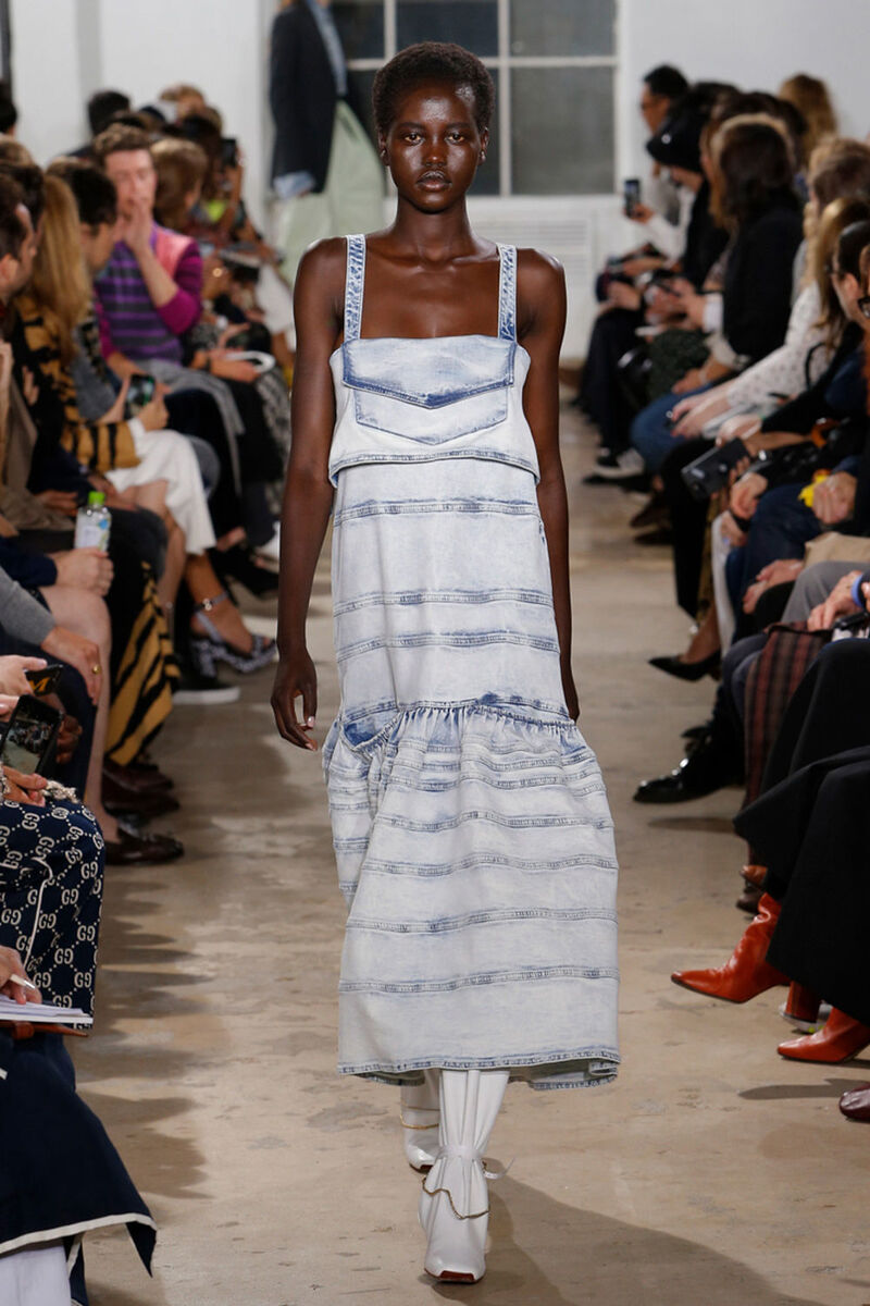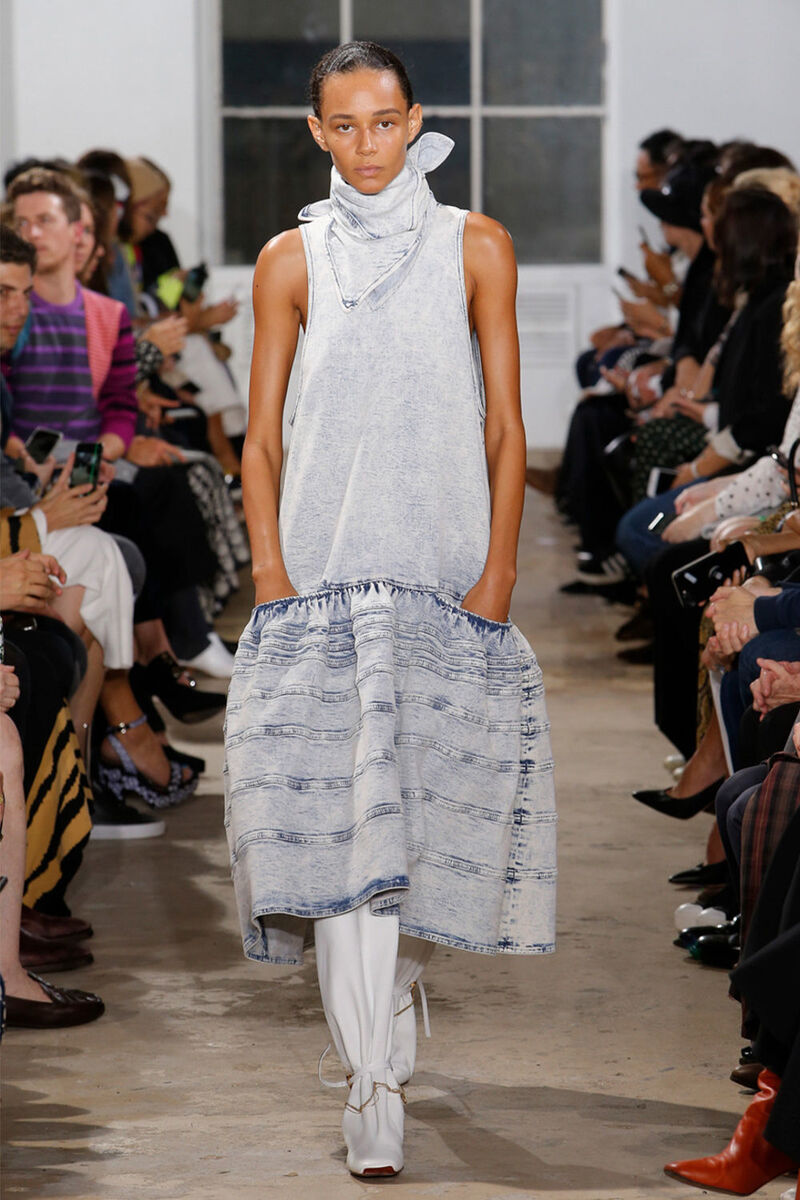 Proenza Schouler SS19 does not fit neatly into the box of ´fancy at first glance´ collections, nevertheless it does contain a few pieces which aspire to become the hot trend of the next season. Denim skirts and maxi dresses? Soon to be expected to flood the shops!