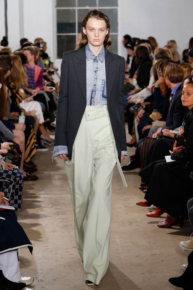Proenza Schouler SS19, or what to see if you want to fall asleep quickly and have dreams about an old video clip by Modern Talking - Cheri Cheri Lady. Yes, it is precisely the 80´s video clips, where one can see oversize denim shirts, jackets and washed-out denim. But the question is whether we still want to travel in time!