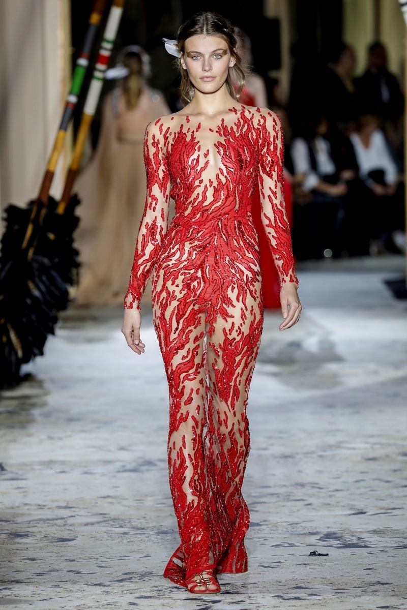 The great fashion designer, Zuhair Murad, dresses celebrities such as Beyonce and Jennifer Lopez for the red carpet. In his Haute Couture collection he expressed respect for ancient cultures, using amazing decorations, which bejewel his beautiful evening or wedding dresses. Symbols as well as visual vocabulary of native American cultures, in particular Sioux, Navajos and Iroquois, have been combined to create geometric pictograms, so that beautiful female forms on red, white, gold and black are beautifully accentuated.