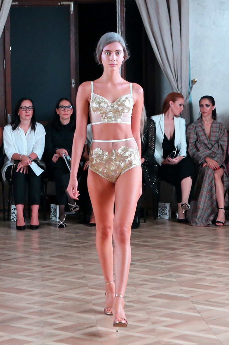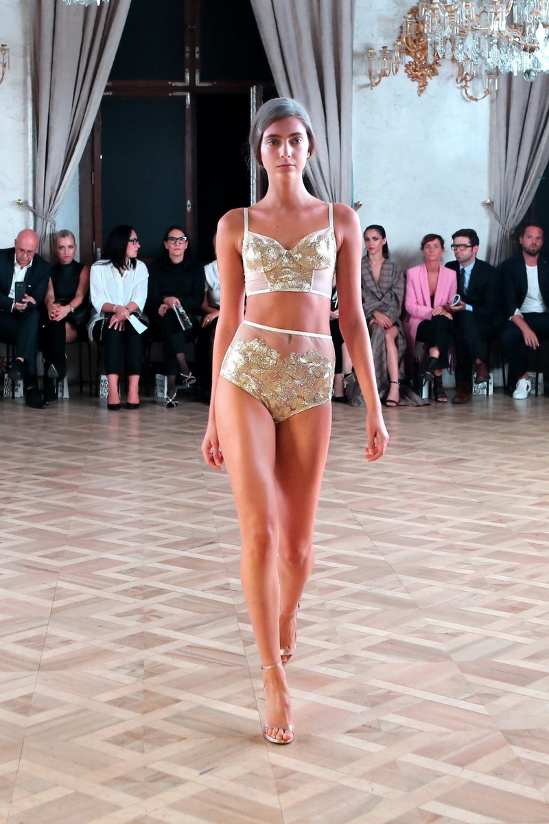 The first glance my eye was caught by the white-gold corset bra in combination with high-waisted pants, which were also greatly embellished by gold. Sharply elegant and at the same time so sexy. Tereza Vu makes lingerie exclusively from luxury French lace and meshes, therefore everything is indeed of top quality.