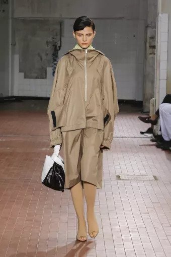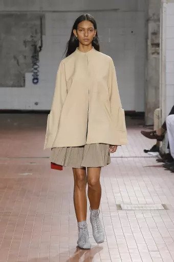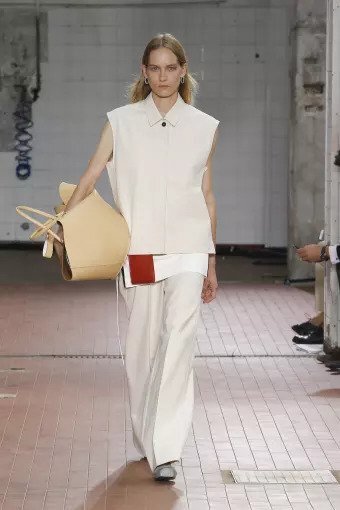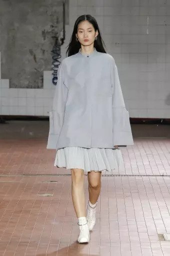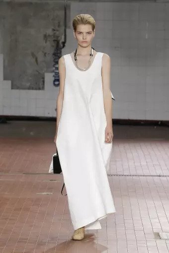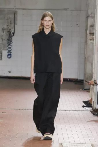 The fashion show was held in the dreary and chilly setting of an old factory. The classic catwalk and opulent decorations were replaced with cracked or missing wall tiles. If Jil Sander was aiming to go against the current, it undoubtedly succeeded.