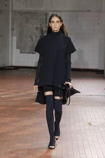 Firstly, I’d start with the only outfit that I deemed wearable (at least for me). I’m referring to the black dress that looks like an oversized t-shirt, with a long-sleeved turtleneck underneath, the black handbag and the stretchy musketeer boots with an open toe. It’s not really suitable for spring/summer, but it could come in handy during “women’s days”, because every woman will feel secure and comfortable simultaneously in this outfit.