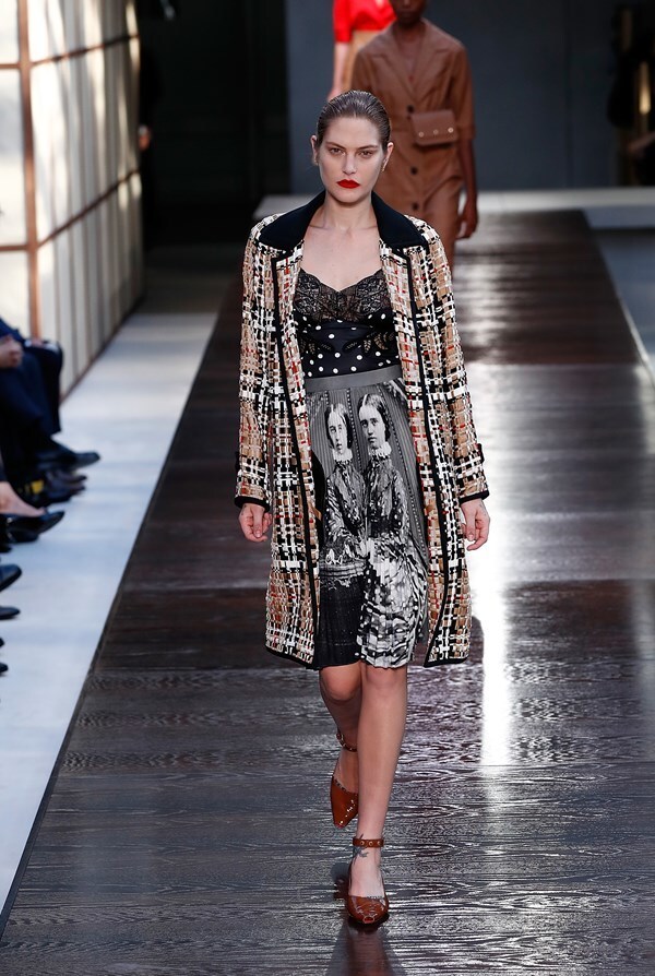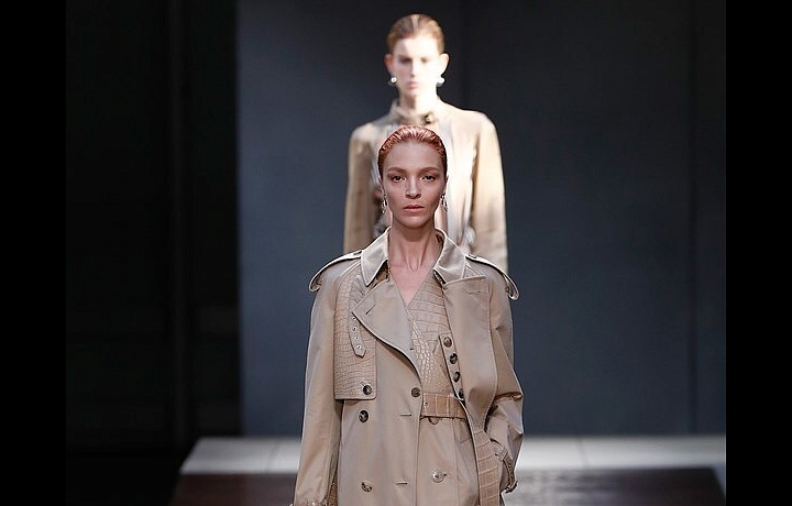 Exactly a year later and with new management Burberry presents deluxe elegance, which replaces the knitted items, rainbow coloured models, sporting vests or tasteless ponchos and raincoat style coats, which are items that the previous creative director Christopher Bailey based his last two collections on.