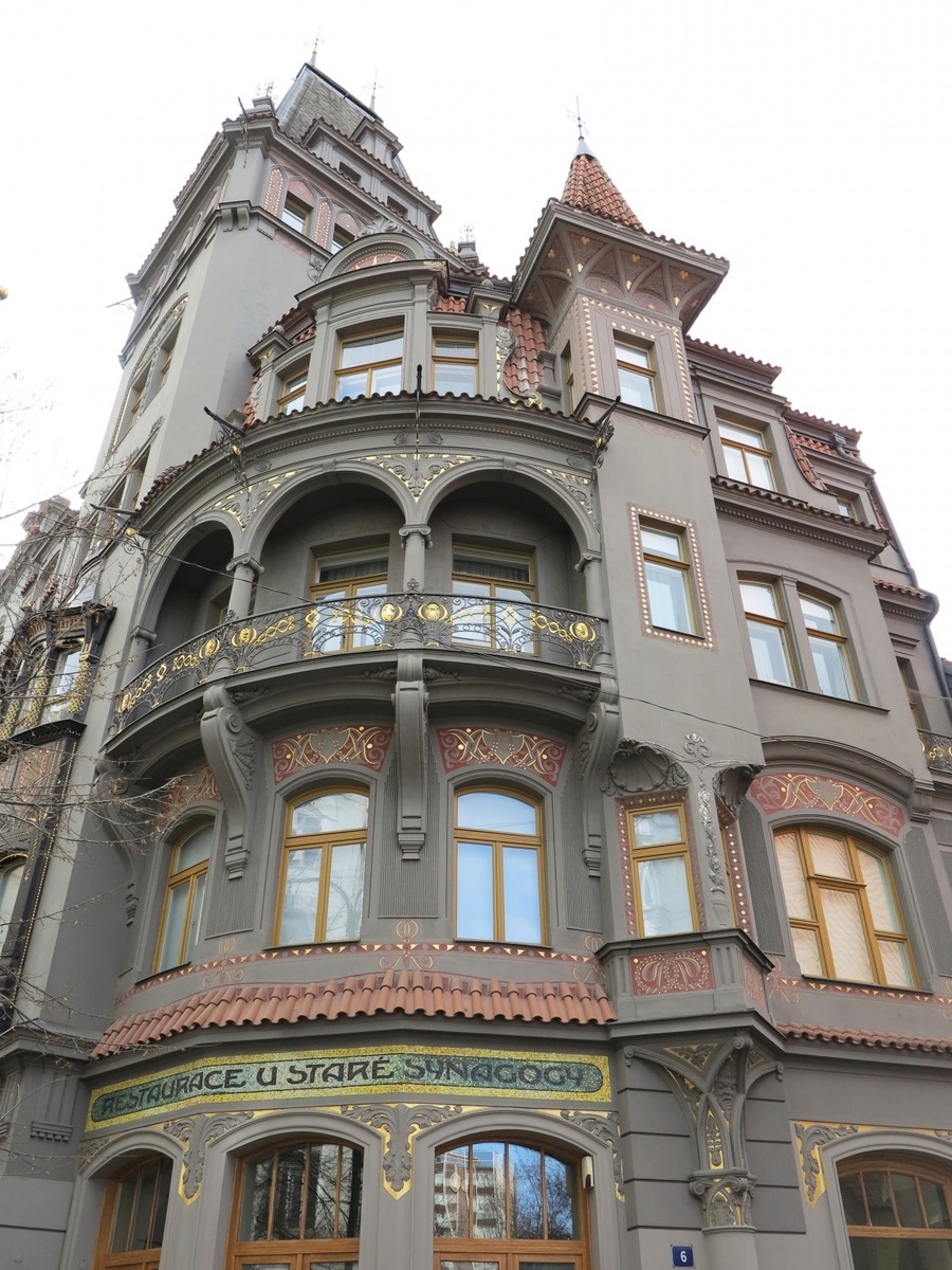 One of Klenka’s buildings which is for example to be found on Pařížská is the U Synagogy house which attracts visitors from afar with its “golden” decoration, enticing them to come and at least have a quick glance. The building was recently renovated and visitors can go for lunch or dinner in the luxury restaurant which is located here.