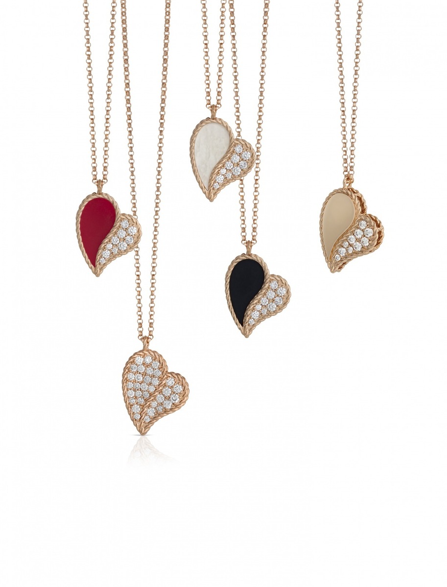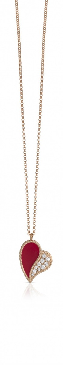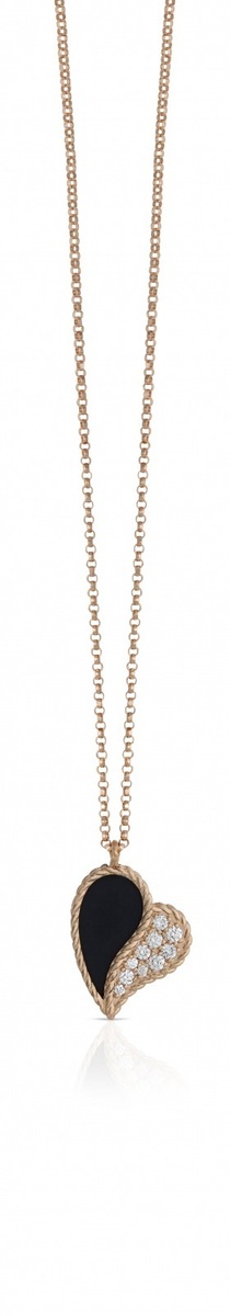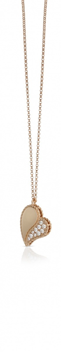 A unique pendant as a gift to a loved one to which you can express your feelings. In the heart which has 2 parts, there is a marriage of pink gold and diamond. You can choose from 3 other variants, with added mother of pearl, coral or onyx. Apart from love which you can give as a gift along with this pendant, it is respect towards women of today that Roberto Coin wants to especially celebrate. That is also why he created a heart, which is very much a female shape.