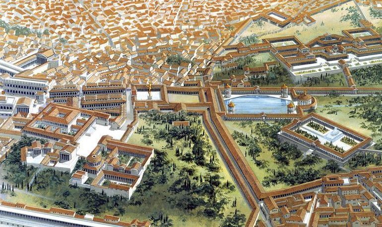 Emperor Nero was many things, but he never small-minded. After the great fire of 64, he decided to have a luxurious, excessive palace built, decorated with gold, and which would include pastures, vineyards, and forests full of game. The property would include an immense lake, in place of which the Roman Coliseum now stands. Surrounding the lake, houses the size of towns were built.