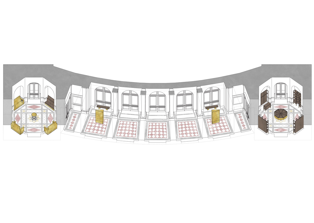 The contest was announced as closed and one-round and ran from November 2018 to February 2019. Sketch money for all participants was 20.000 CZK. The winning studio received a contract to design the luxury interior of the Rudolfinum entrance area worth 180,000 CZK.