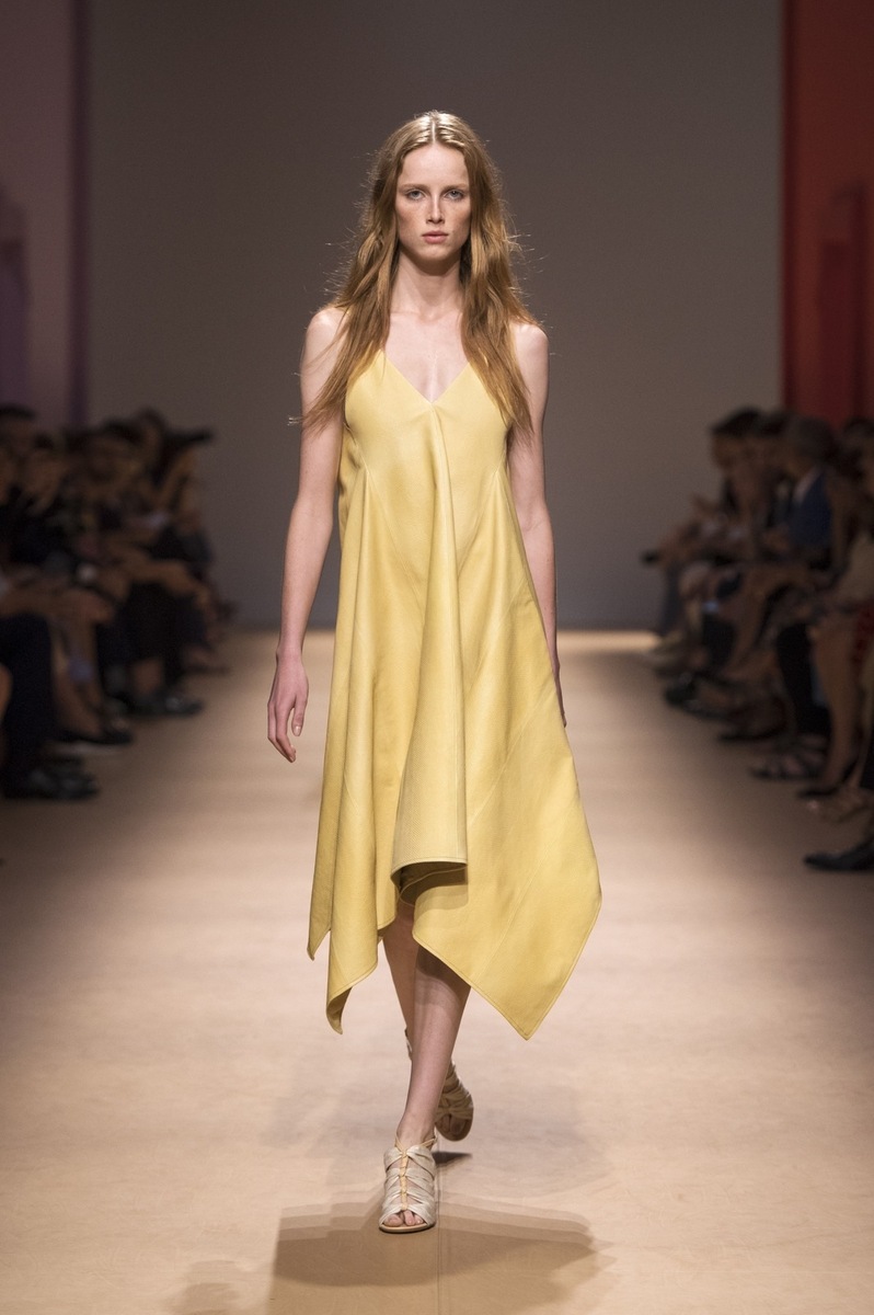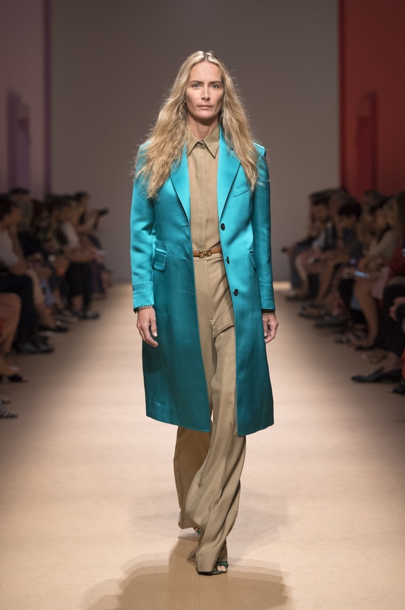 Which of the models is our favourite? Without hesitation we would respond: The leather midi dress in khaki hue with a collar and a slim belt! This piece by Salvatore Ferragamo will definitely help you to achieve the wasp-like waist and sensuous feminine curves.