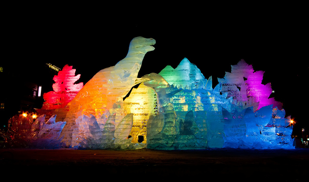 The Susukino district, located a single metro station from Odori Park, showcases about 100 ice statues every year.