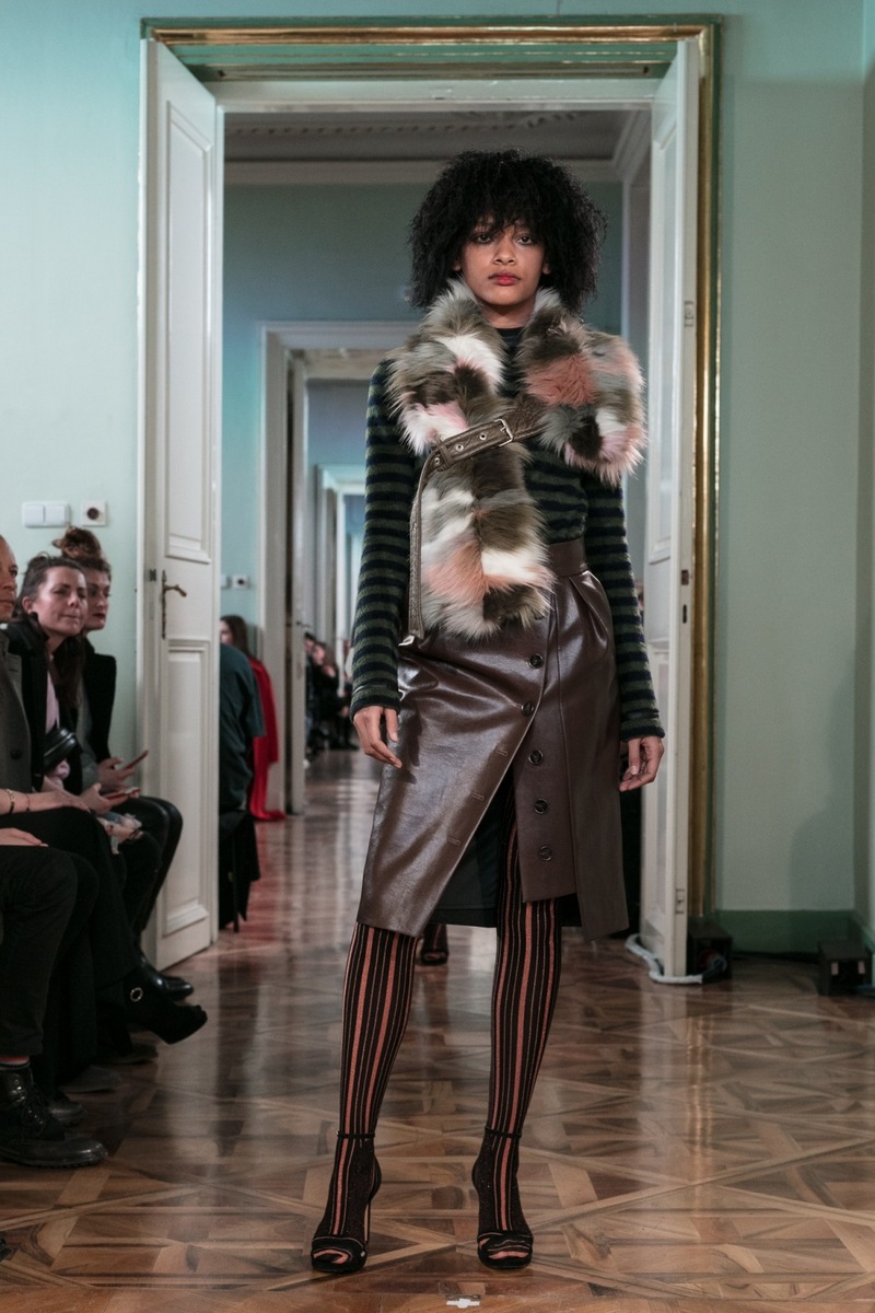 CHATTY collections tend to be playful, teamed up with maxi-volume. This has been this time round set aside and what remained in particular is playfulness and accent on the cut. The luxury FW 18 collection is formed by pieces in the form of denim overall, leather trousers and skirts, stylish blazers and pullovers, trouser suits, coats with some fur or luxury fanny pockets. In the eyes of CHATTY the autumn will belong to striking patterns and therefore your best bet are stripes, animal prints or check.
