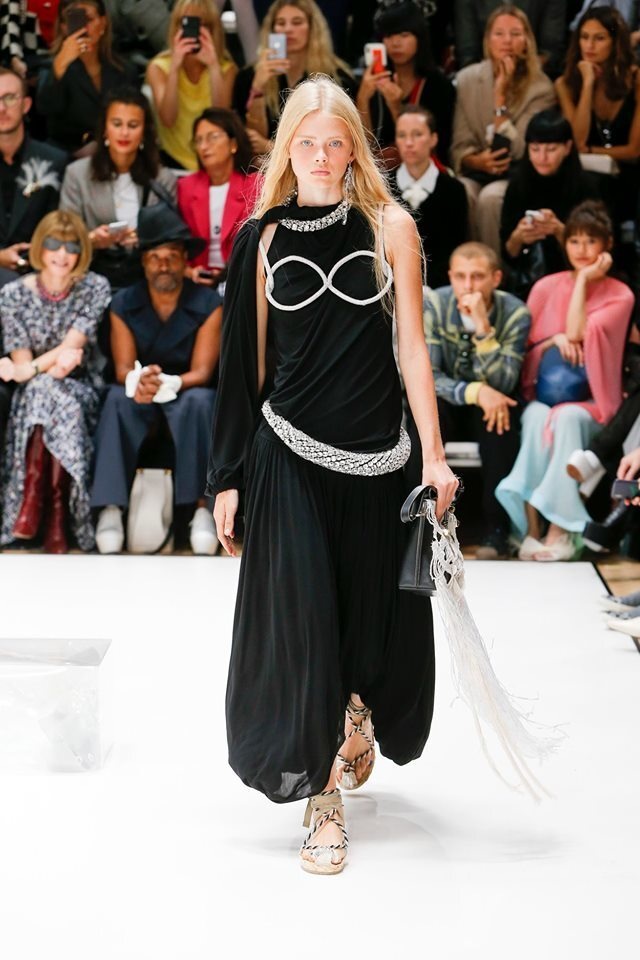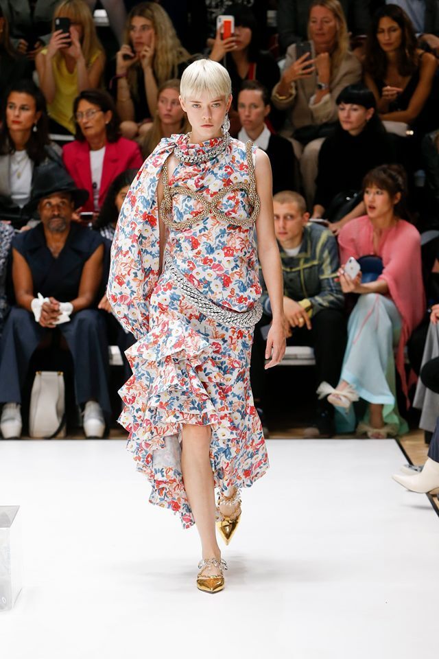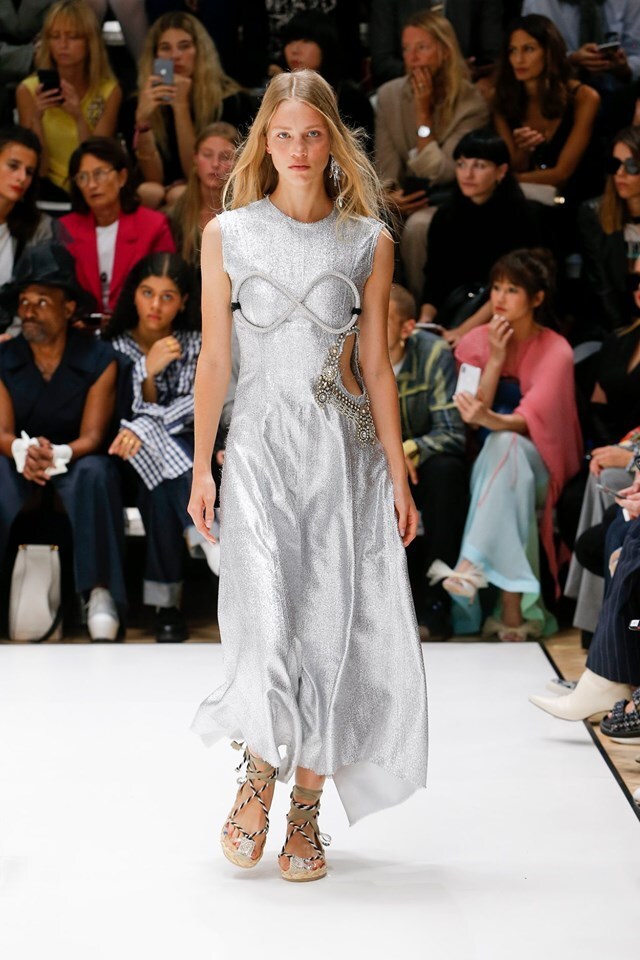 Funny and charming at the same time. That's the provocative collection of Irish designer Jonathan Anderson, dominated by 'bras', metallic shades and elegant chic. We enjoy the play with masculine and feminine elements and look forward to seeing what the designer comes up with next time.