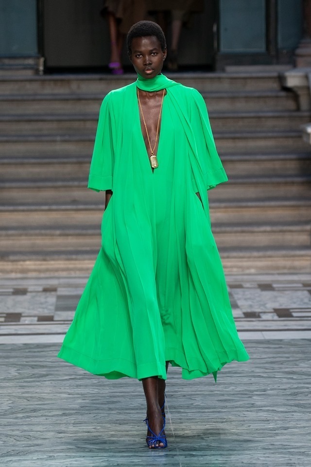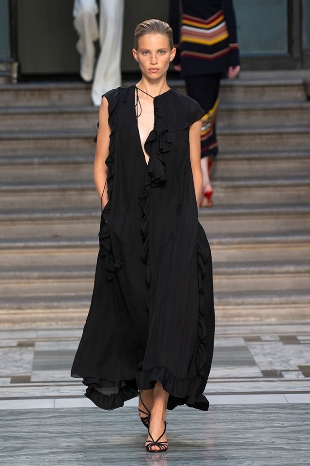 The new Victoria Beckham collection is characterized by the minimalism, precise tailoring and slim fit typical for her brand. It features universal dresses suitable both as daywear and evening wear or stylish suits complemented by masculine elements. And although the collection contains a number of beautiful pieces, it is starting to be a bit boring... So yes, you'll definitely be able to get a chic business suit or luxury cocktail dress here, but SS20 lacks anything surprising or unusual.
