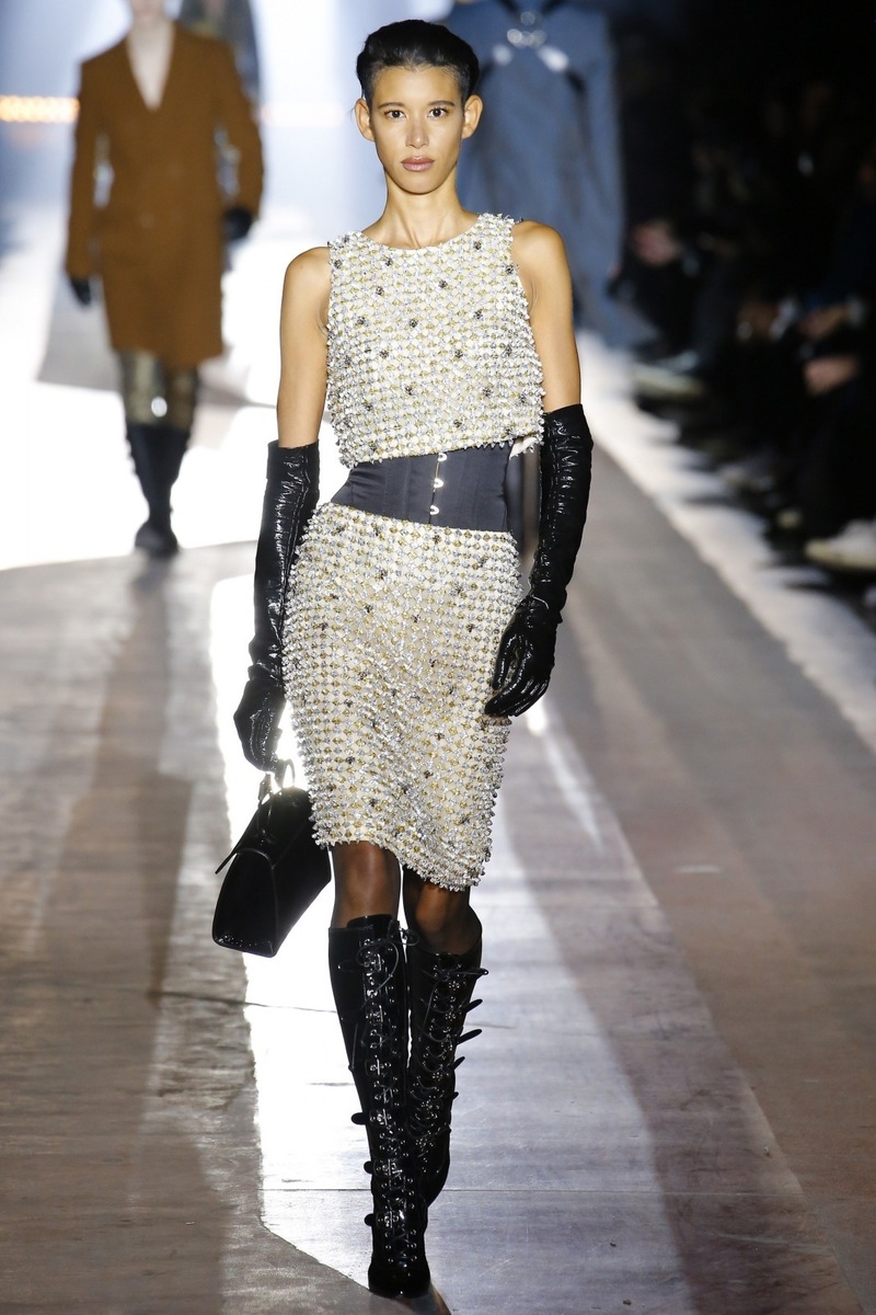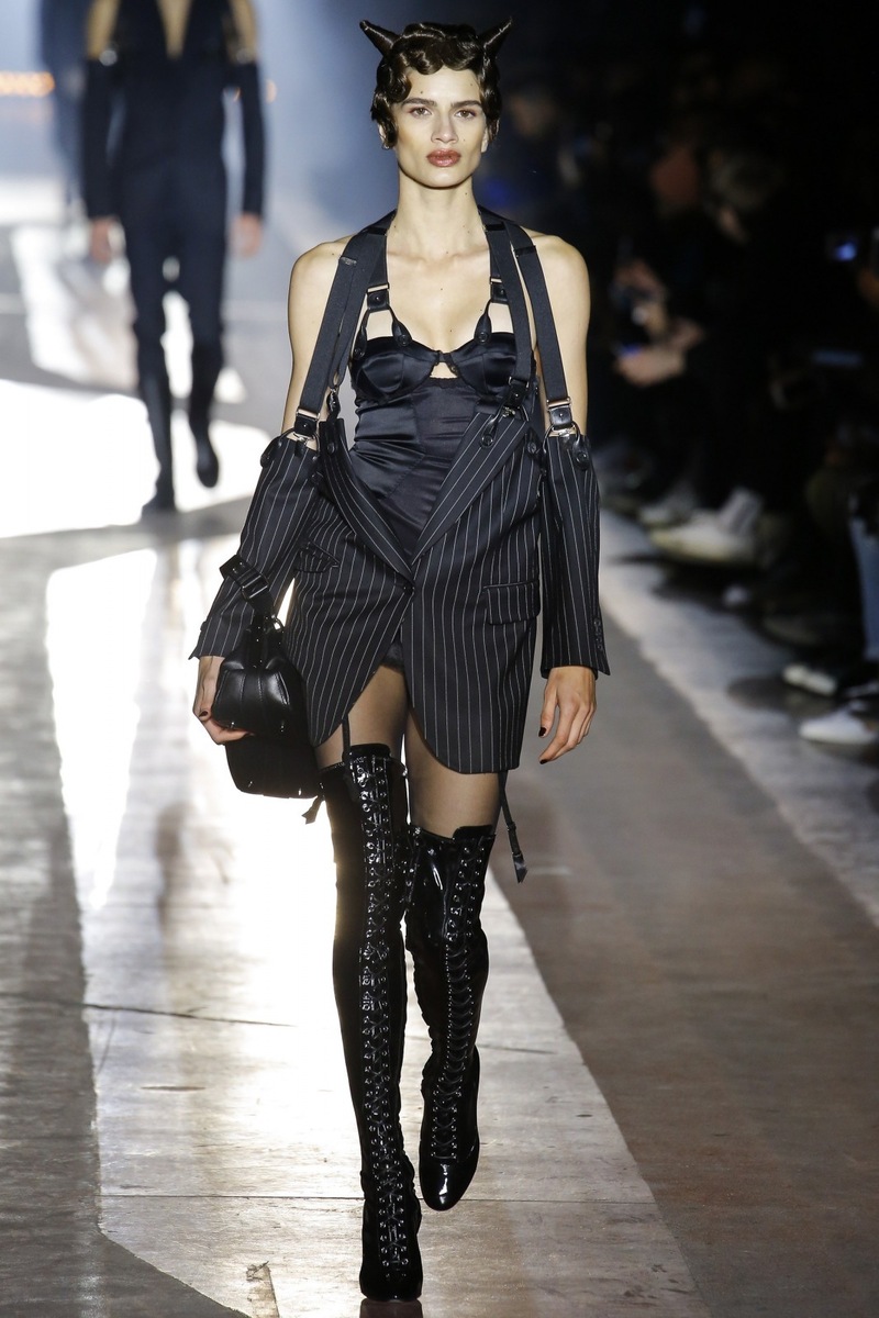 To conclude, I certainly must mention the black corset with shoulder straps, satin lace-up above-the-knee boots and the pompous ostrich skirt! Yes, it does remind me a bit of the costumes worn by Madonna during her Blond Ambition Tour. And yes, you are right, there are not very many places you can get away with them. But the hell with it! This is a model worthy of Grammy recognition!!!