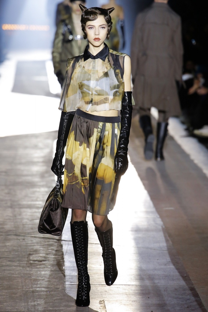 In addition to latex, leather, feathers, cotton or satin, Moschino also utilised organza and silk. Using these materials, Jeremy Scott created luxury transparent dresses, skirts and blouses, which thanks to the technology and graphics used literally became a work of art.