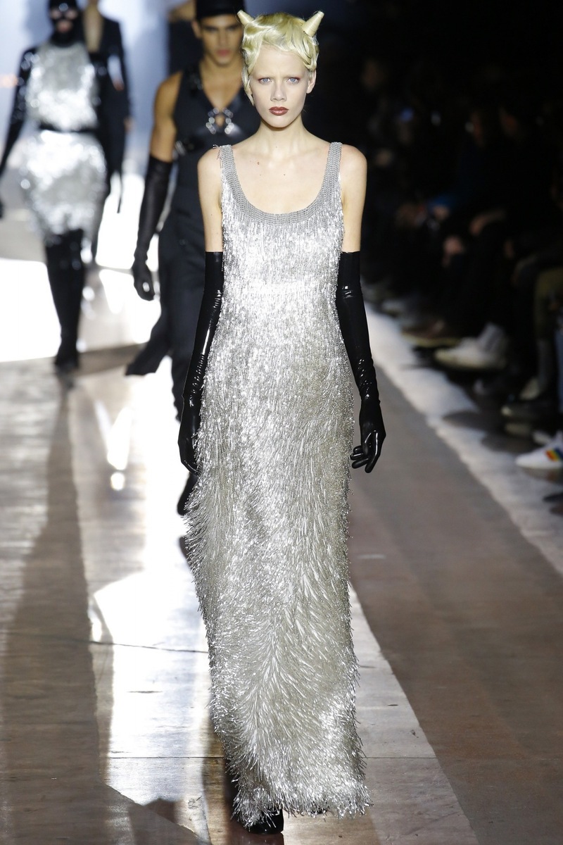 The ladies´ part of the Moschino FW 2018 collection is completely different from that for men. It is playful and I think the idea of those little horns is great! The collection is actually wearable if you team it with natural, soft make-up.