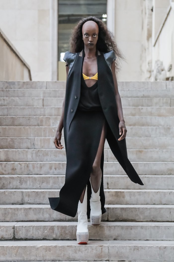 Rick Owens completed the SS20 outfits with shoes on extremely high platforms. Did you go back to the 90's in your thoughts, remembering the abhorrent "hooves" that even the popular Spice Girls wore? It seems that one of the worst kind of footwear in history got second wind!