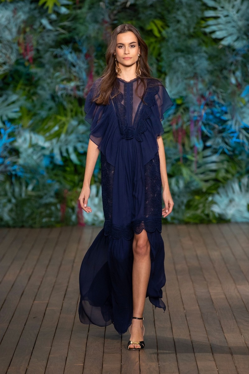 While working Alberta Ferretti often uses luxury chiffon, lace and other transparent fabrics, and Cruise 2020 is no exception. These elements are decorated not only with bold-looking blouses, but also with luxurious evening gowns or dresses for daily wear. Beautiful variations have become the ruffles that adorn most of the models - romantic, feminine and sexy at the same time. We applaud!