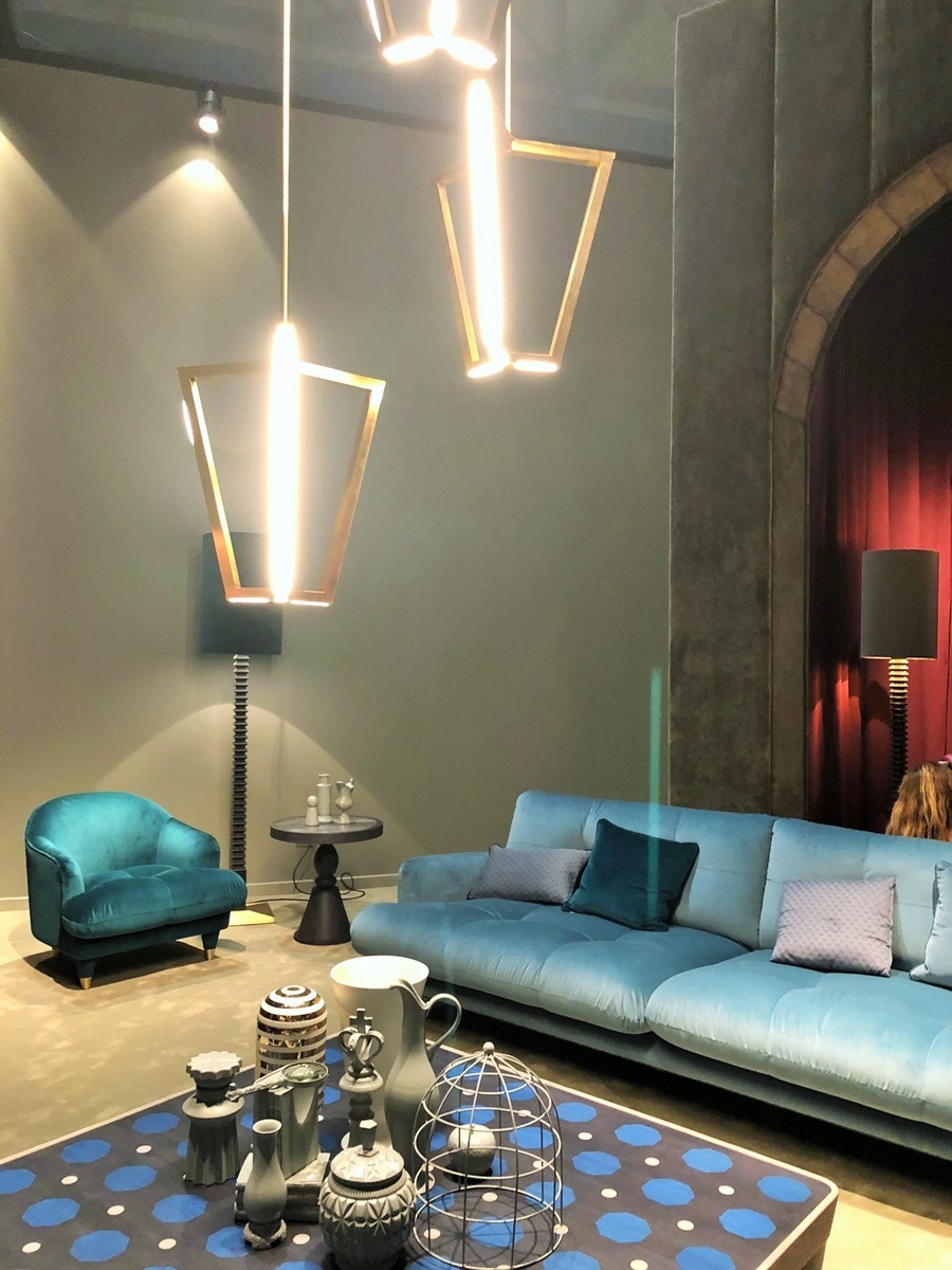 The luxurious Blue Lyric collection features new designs from Ferruccia Laviani and Dainelli Studio. The concept presents 3 sets that represent the office, dining room and living room. The designs are so creative that they often shock!