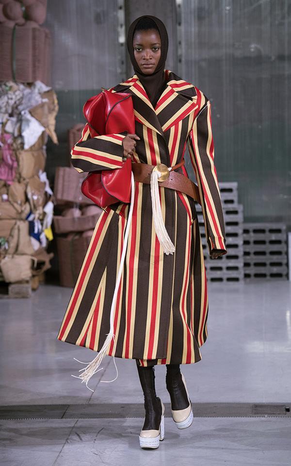 Francesco Risso applied maxi volume on the clothing; trousers, overcoats, suits, as well as on accessories. The most striking pieces include handbags, which, however, thanks to their monstrosity look more like rubbish bags than a luxury accessory.