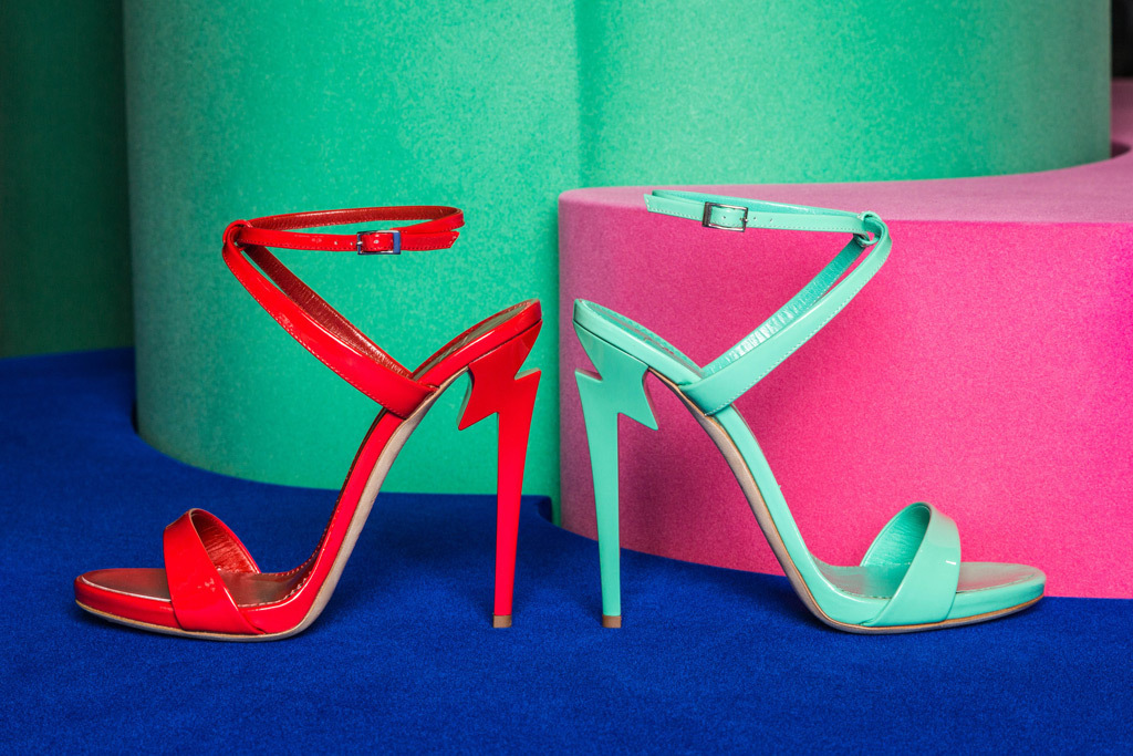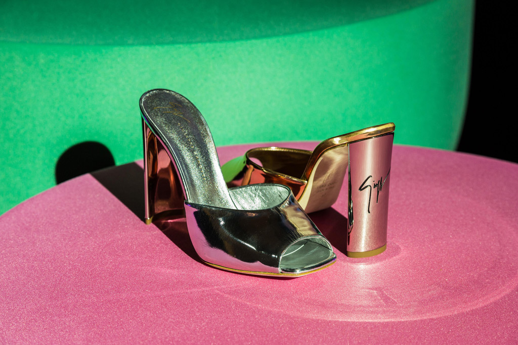 Giuseppe Zanotti is a good guarantee of quality thanks to his personal style. And I do need to say right from the start that his approach to the new collection, which seems to scream “Let’s play at the pool”, really speaks to me! As soon as I saw the model jump into the water in her neon needle heels, I felt an urge to follow her and give her a high-five.