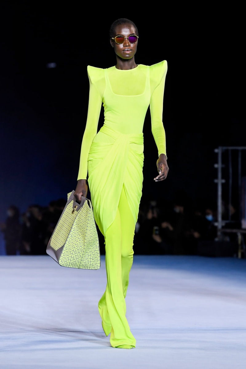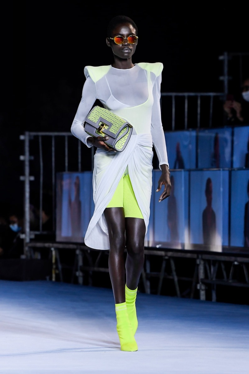 Women of different ages, dazzling glitter, sexy mini dresses in sweet colors, sleek elegance, timeless denim, chic business look but also unfettered models shining with neon colors. Balmain creative director Olivier Rousteing prepared a luxurious cocktail full of juicy fashion trends pleasing to the eye!