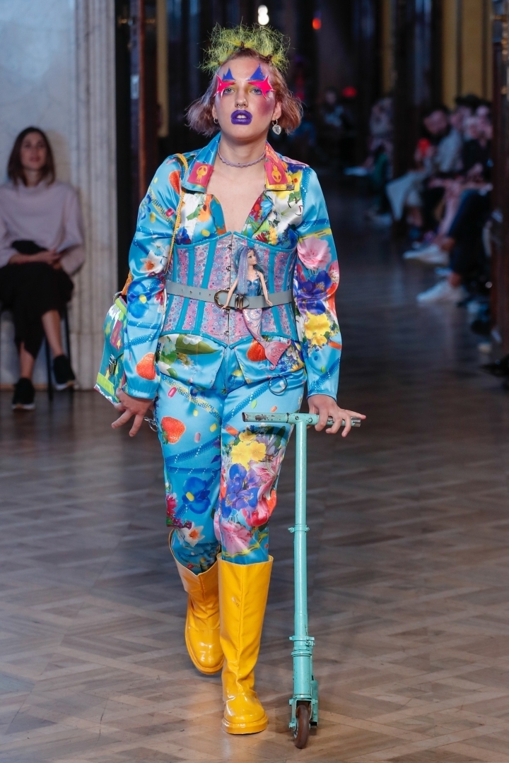 Dominika Kozáková studies scenography at the Janáček Academy in atelier of Jana Preková. Her fashion could be described by words such as experiment, extravaganza and genderless fashion. The colours, materials and designs are a challenge for her. This year her gender free collection, Freak Show, was presented at MBPFW within VAN GRAAF Junior talent. And only there, she also presented it in the Netherlands in Maastricht at Fashionclash Festival 2018.
