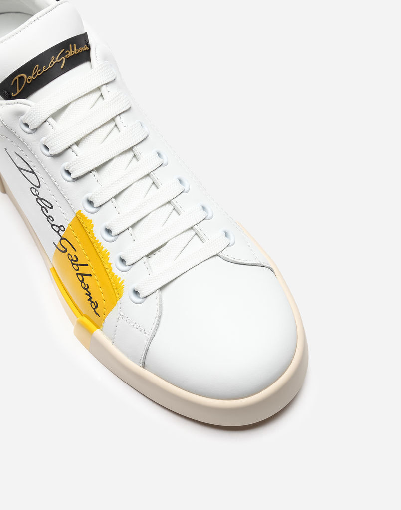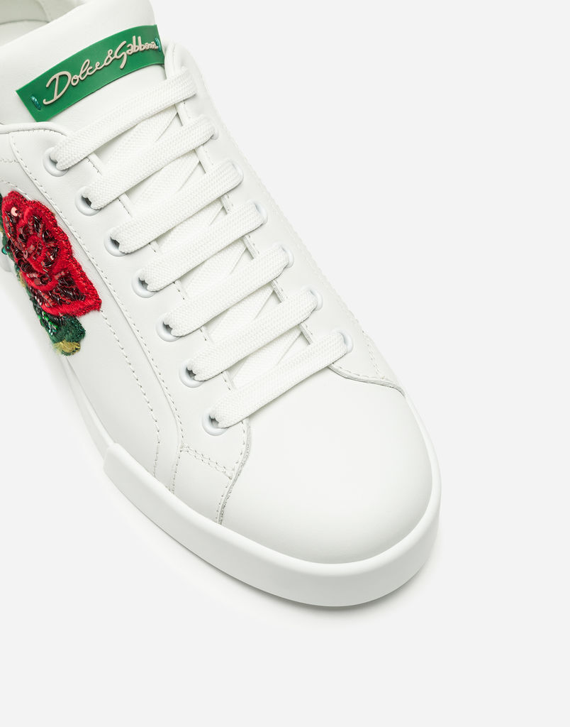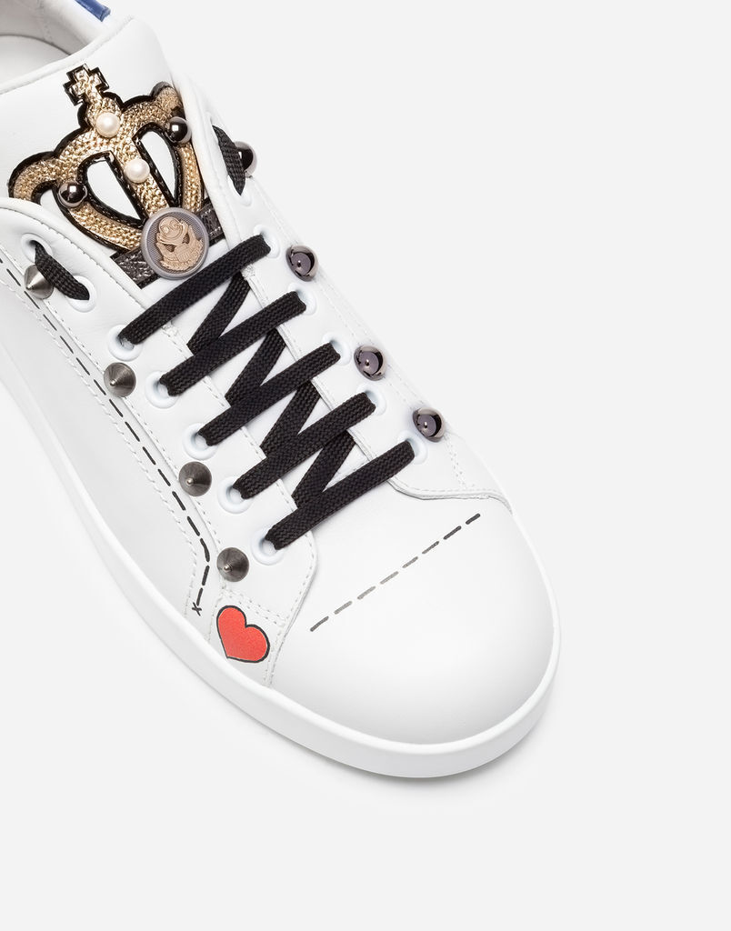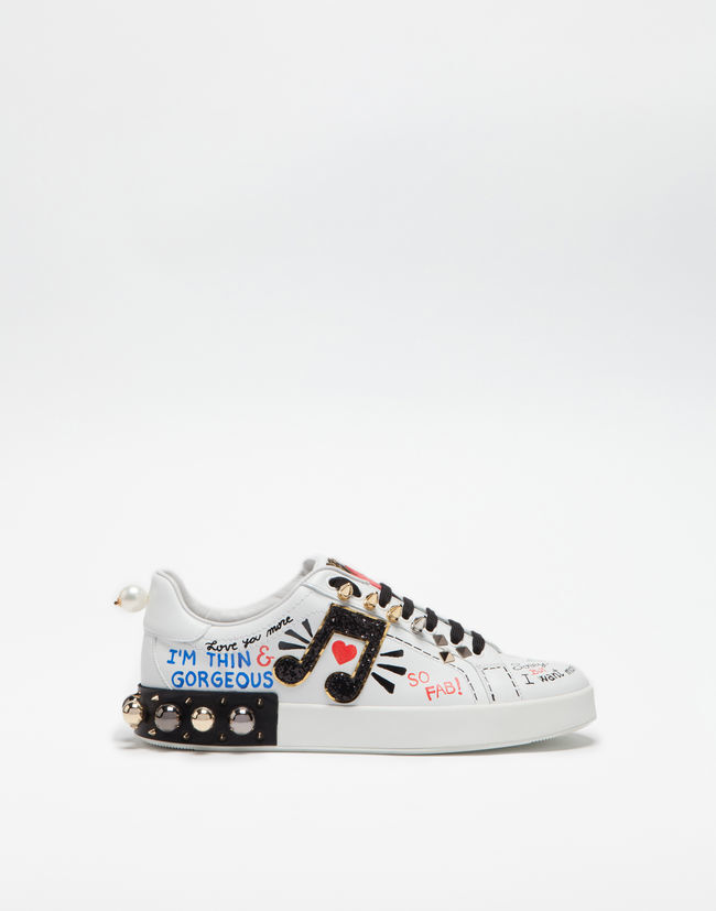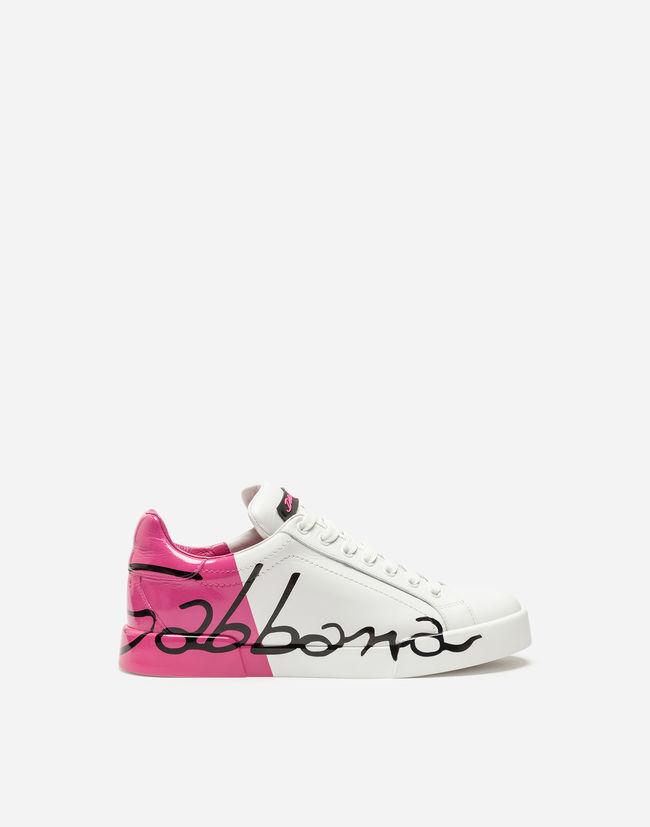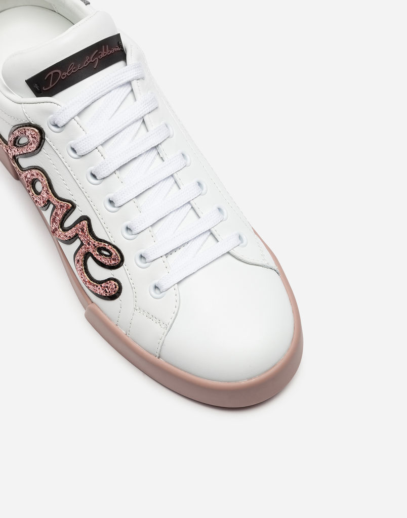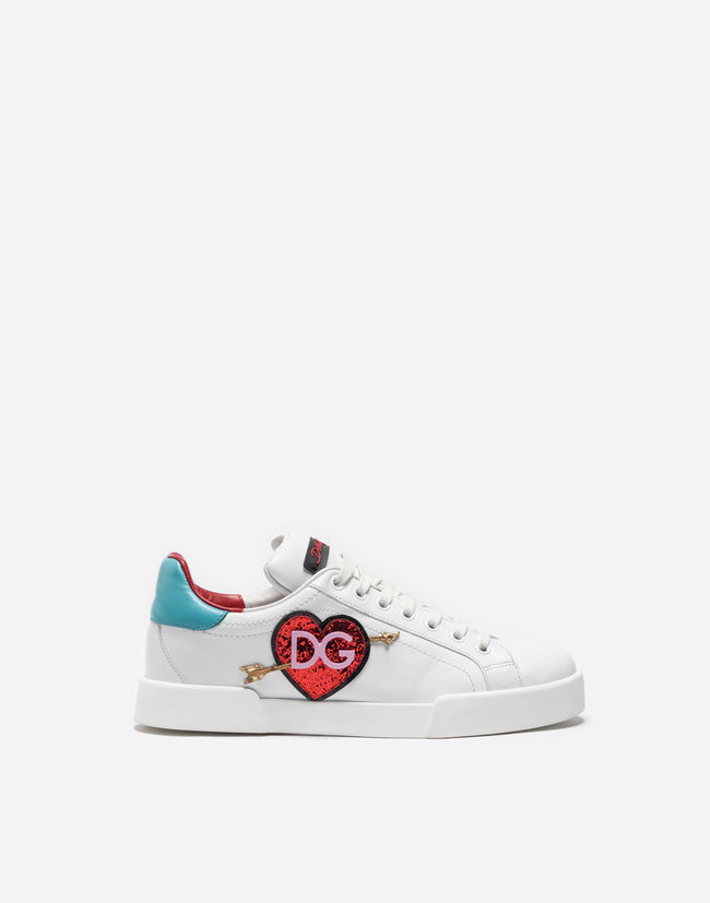 Do you prefer the simpler version? Then you will love the luxurious and elegant sneakers in white with the delicate Dolce & Gabbana logo and silver or gold embellishment on the heel. Slightly more distinctive are the white sneakers with the Gabbana signature. They are available in white combined with gold, metallic black, pink, blue or red, and complement any simple outfit.