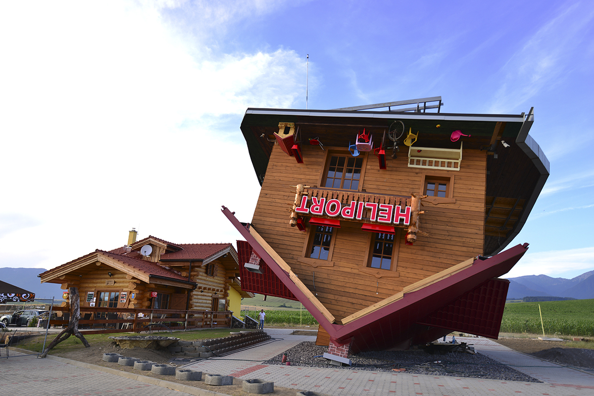 The upside-down house is a unique project. You can find it only in one place in Slovakia near Liptovský Mikuláš. This interesting house was built by a Slovak businessman as a reaction to his unsuccessful war with the bureaucracy in Slovakia. He wanted to indicate with it how the state works. Over time, his protest became a successful tourist attraction, which is still very popular. So what is it that you can see here? Imagine a classic family house with everything that belongs in it - a kitchen, living room and bedrooms... And now turn it upside down.