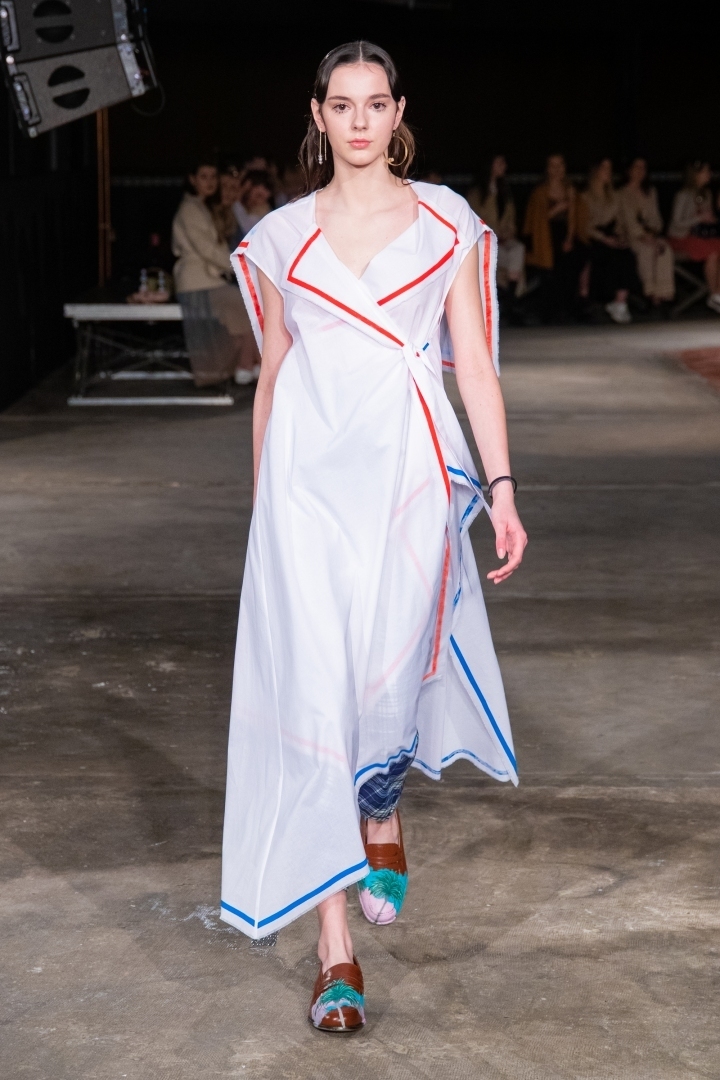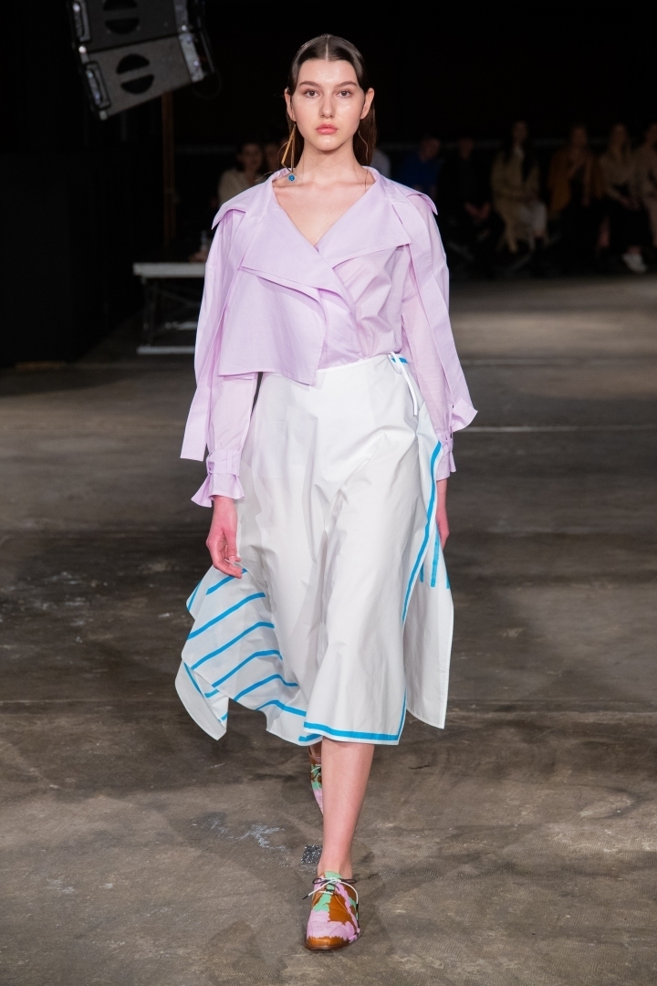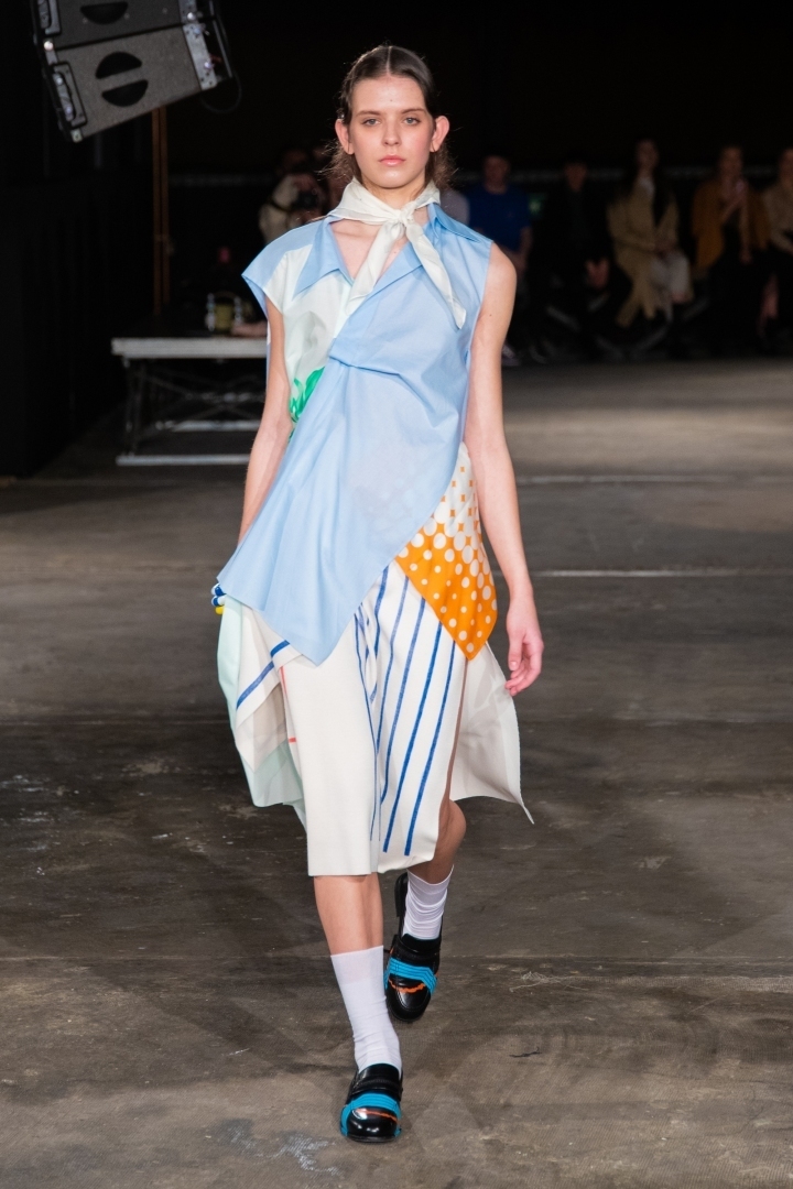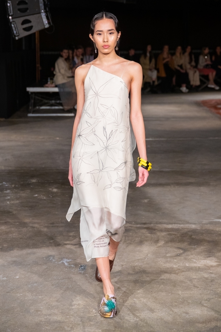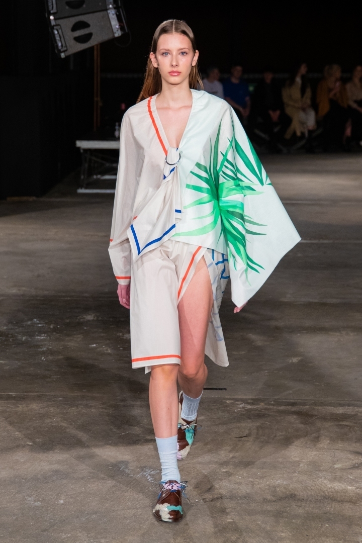 Her selection of loose cut, over-sized blouses, dresses and pantsuits isn't really my cup of tea. To me it looks unfinished; after checking out all of these models I won't think back to this fashion show ever again.