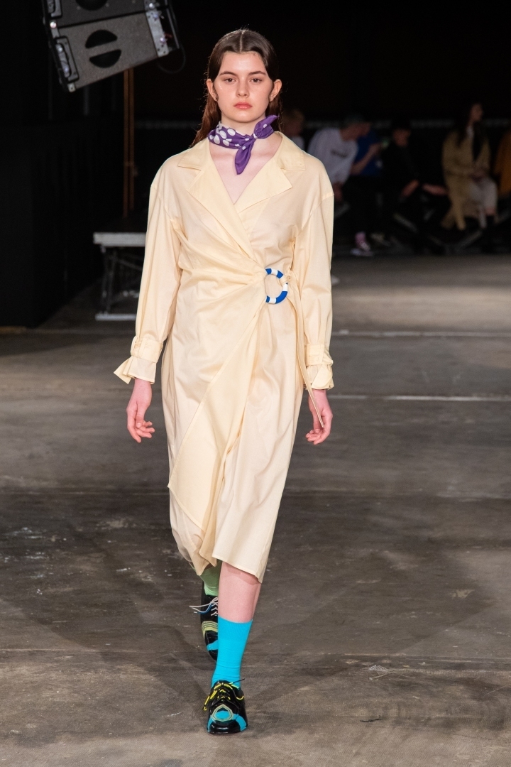 Some models reminded us of classical pajamas, some we'd be glad to take out to a luxurious beach. The chosen colors and patterns dabble in retro. Orange with blue is a clear example. What to do with such clothes in daily life? Every creative soul would figure it out for sure, and combined with a more feminine, luxurious element, the overall look could be okay. Why is the designer making it needlessly complicated for us remains in question though.
